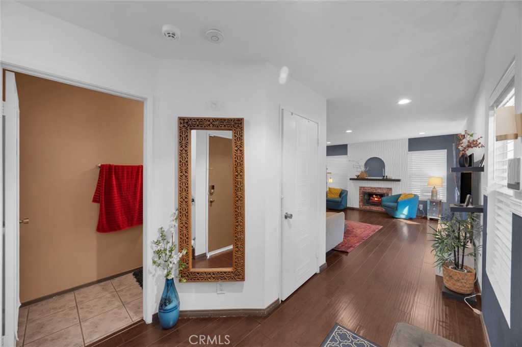 Spacious and well maintained two story townhome offering approximately 1,901 square feet of bright and open living space. The main level features a generous living room, guest powder room, and a well appointed kitchen with a separate dining area that opens to a private patio, creating a seamless indoor outdoor flow ideal for entertaining or relaxing. The upper level includes three well proportioned bedrooms and two full bathrooms. The expansive primary suite showcases vaulted ceilings, an en suite bathroom, and ample closet space. Solar panels provide year round energy efficiency and utility cost savings. Parking includes a two car attached garage with a Level 2 EV charger and two additional parking spaces. Situated within a gated community with 24 hour security and a community swimming pool. Conveniently located with easy access to the 210, 118, 5, and 405 freeways.