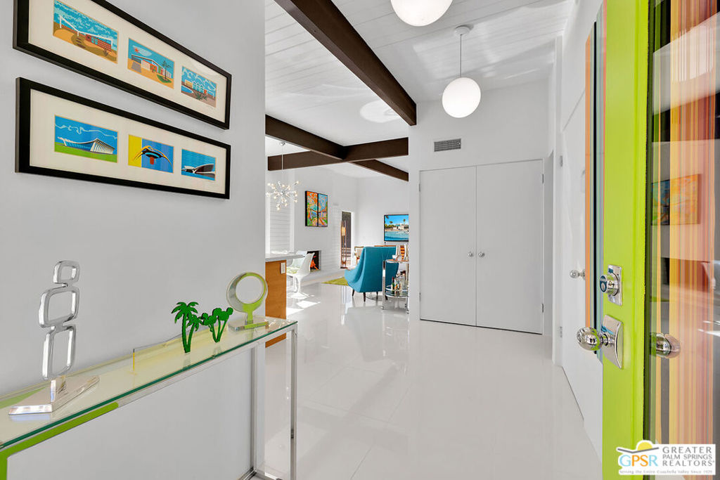 Believed to be one of the last Alexander-built butterfly roof homes constructed in Racquet Club Estates in 1962, this impeccably restored mid-century modern residence is a rare Palm Springs offering. Set on one of the largest lots in the neighborhood and enjoying coveted full southern exposure, the home delivers an exceptional modern desert lifestyle. Originally designed by Palmer & Krisel in the late 1950s, the iconic floor plan has been thoughtfully restored to honor its post-and-beam architecture, soaring clerestory windows, and clean modern lineswhile seamlessly adapting to today’s living standards. The residence offers three bedrooms and two spa-inspired baths, complemented by a sleek European-style kitchen with quartz countertops and stainless steel appliances. Polished white porcelain floors and a striking block wall fireplace complete the refined interior aesthetic. Outdoors, the property truly shines. A sprawling resort-style pool and in-ground spa anchor the expansive grounds, joined by a bocce ball court, gazebo with fire pit, and meticulously designed desert landscaping. Wraparound mountain views and effortless indoor-outdoor flow create a setting ideal for both everyday living and entertaining. Recent upgrades include a newly coated foam roof, updated plumbing, refreshed pool systems, an on-demand water heater, and dual-pane windows throughout. Rare, iconic, and impeccably maintained, this is a home that must be experienced in person to be fully appreciated. Contact the listing agent to arrange a private showing.