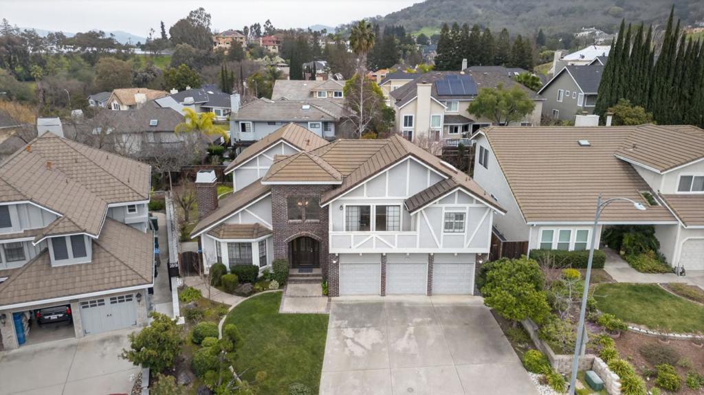 What an exceptionally beautiful, tudor-style residence in this premium Almaden Valley neighborhood! This impressive home presents the ideal opportunity – and floor plan – to create your forever home. Enter the home to high ceilings, a gracefully curved staircase, and a formal living and dining room – perfect for entertaining! At the rear of the home, you’ll find the expansive kitchen with breakfast nook and a classic and inviting family room with brick clad fireplace and exposed beam ceilings. The convenient layout includes a bedroom (office) and a full bathroom on the ground floor making the ideal spot to work from home or have a guest suite. Upstairs you’ll enjoy 4 large bedrooms including a large scale primary suite with ample closet space, an oversized bathroom and lovely views from the suite’s private balcony. Additional amenities include central HVAC, a finished three car garage, spacious back patio and attractive yard with flowering trees and planting beds, and more! Almaden Valley is a gem of a neighborhood located against the lush foothills of the Silicon Valley, close to the stunning golf and country club, swim and racket club, hiking trails, and more.