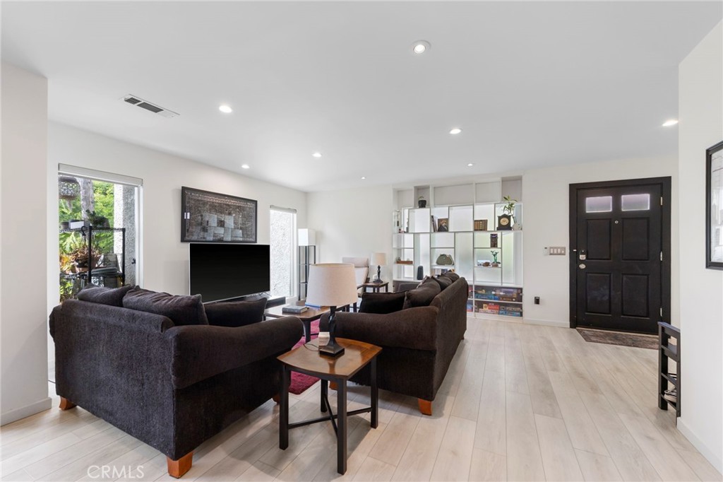 Welcome to this beautifully updated end-unit townhome in the heart of Studio City. As you enter the unit, you are greeted by tons of natural light in the living room, which opens to the kitchen and a private balcony. The upgraded kitchen features quartz counters, gas appliances, and modern cabinets. The primary bedroom features a huge walk-in closet and upgraded ensuite bathroom. Other upgrades include contemporary laminate and tile flooring, well-appointed bathrooms, and high-end automated window shades. Additional highlights are in-unit laundry, side by side parking, plus built-ins and recessed lights. Studio Village is a highly desirable complex with multiple pools and hot tubs, tennis court, and resort-like grounds. HOA fee includes water, sewer, trash, earthquake insurance, and a comprehensive cable TV and streaming package. Ideally situated near the shops and restaurants of Ventura Blvd, parks, and film studios, this location is perfect for anyone who wants access to everything that Los Angeles has to offer.