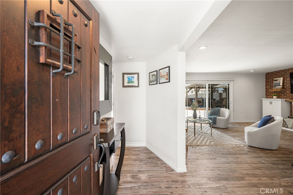 BEAUTIFULLY RENOVATED HOME with all the upgrades in the highly desirable Garden Park community. This turnkey 3-bedroom, 2-bath offers a perfect blend of comfort, style, and functionality starting with its inviting curb appeal that includes new artificial turf, established stone-mulch planting beds, a new main line, and a new driveway. The home is move-in ready with continuous vinyl flooring throughout, dual-pane vinyl windows and sliders, and a stunning kitchen with sleek quartz countertops, custom cabinetry, a large center island with plenty of storage, and premium stainless-steel appliances including a 6-burner WOLF range and an ultra-quiet Bosch dishwasher. There’s also a whole-house water filtration system! An open floor plan livingroom/kitchen, you’ll find a guest bathroom along with three well-proportioned bedrooms featuring ample closets and plenty of built-in storage. One guest bedroom even has a custom-made queen-sized Murphy bed that doubles as a desk. The master features an ensuite with a large shower and a custom floating vanity. All the home’s blinds are also custom-made blackout shades for when you need them. New Pex re-pipe, new A/C and heat pump, rewire, and upgraded electrical panel (including a subpanel in the garage) ensures peace of mind. The home is also a smart home–the lights, fans, locks, thermostat, and garage door opener can be controlled by your voice or by touch. The home has new PAID-OFF solar and 2 Tesla Powerwalls, and an EV charger in the garage. The insulated attached 2-car garage with a tankless water heater is finished with the same continuous flooring as the rest of the house, has plenty of custom cabinets, and can double as a bonus room. Last but not least, the home’s large backyard (featuring a gorgeous pool, a 60-jet jacuzzi, and a cedar gazebo) is a standout feature of this house. Hose off after your dip in the pool with your very own outdoor shower. You’ll also enjoy fresh fruit from your very own mature Navel orange and white nectarine trees. Whether you’re a first-time buyer or looking for a long-term family home, this property offers a fantastic location in the top rated GGUSD – Barker Elementary, Bell Intermediate, and Pacifica High School. Plus, it’s down the street from beautiful Eastgate Park that hosts concerts, chili-cookoffs, and car shows. You’ll be close to shopping centers and there’s nearby access to the 405 & 22 freeways. Schedule a visit and fall in love with your future home!