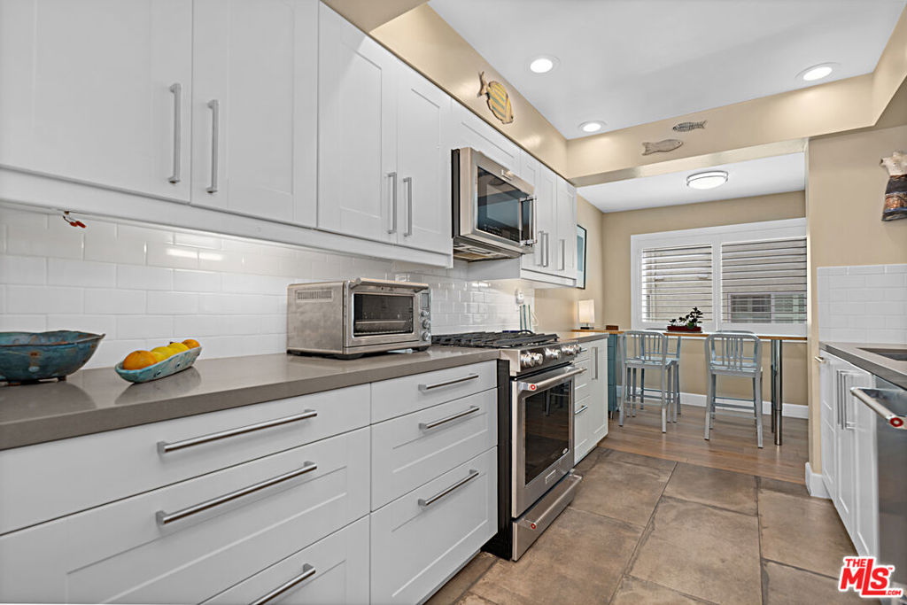 This beautifully updated move-in-ready townhome offers comfort, style, and exceptional community amenities. Studio Village features beautifully landscaped walkways, six pools, five spas, two tennis courts, and a clubhouse. A private entrance leads into a flexible split-level open floor plan designed for effortless living and entertaining. The inviting living room features cathedral beam ceilings, a skylight, a gas fireplace, and sliding doors that open to a private brick-floored patio, creating a perfect indoor-outdoor flow. The updated kitchen is equipped with stainless steel appliances, Quartz countertops, tiled flooring, recessed lighting, ample cabinetry, a cozy breakfast area. A den on the main level can easily be converted into a third bedroom or home office and is complemented by a convenient guest bathroom. Upstairs, you’ll find two generously sized en-suite bedrooms, both with walk-in closets, offering comfort and privacy. The bathrooms feature Hansgrohe fixtures and beautifully tiled shower walls and floors. Additional highlights include skylights in the primary bathroom and staircase, Venetian blinds, and wood flooring throughout. Direct access to a private two-car garage with washer and dryer, abundant storage. The home also includes a newer AC system with a Nest WiFi enabled thermostat, as well as a WiFi enabled garage door that can be operated remotely via the My app. The monthly HOA fee includes earthquake insurance, landscaping, security patrol, heated pools, spas, tennis courts, water, Spectrum TV and internet, and full use of all community amenities. Ideally located near the Sunday Farmers Market, Tujunga Village, Woodbridge Park, and the restaurants, shops, and cafes along Ventura Boulevard. Studio Village is truly a wonderful community