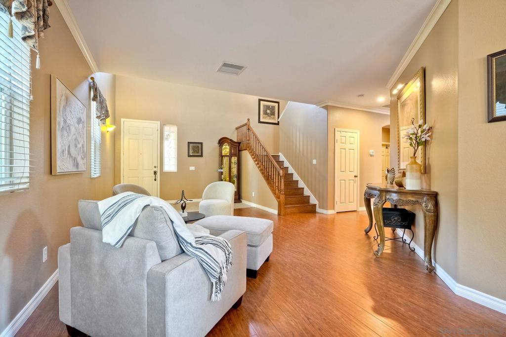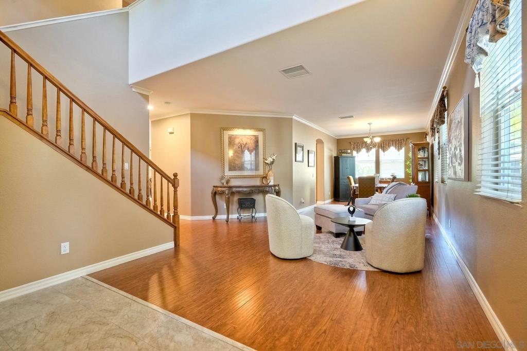 Experience the ease of single-level living in a two-story home, enhanced by a rare in-home elevator that provides effortless access between levels (can be removed if desired). Tucked away in a peaceful Scripps Ranch cul-de-sac, this 4BR/2.5BA home welcomes you with soaring ceilings, wood floors, and a bright, open layout that’s perfect for both everyday living and entertaining. The spacious kitchen features a large island, stainless steel appliances, and abundant cabinetry, seamlessly flowing into the dining and family rooms with a cozy fireplace and backyard access. The primary suite offers a spa-like bath and a large walk-in closet with built-ins, while the additional bedrooms provide flexibility—one is currently set up as an office with direct elevator access. Step outside to a resort-style backyard with pool, spa, firepit, and beautiful sunset views. Fully owned solar and proximity to top-rated schools complete this exceptional home.