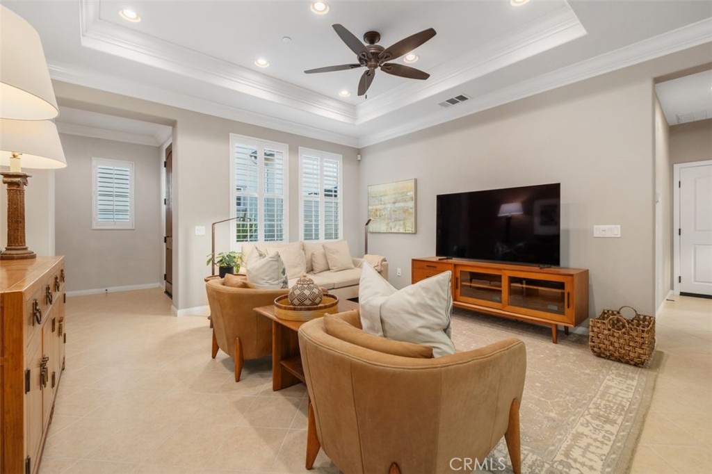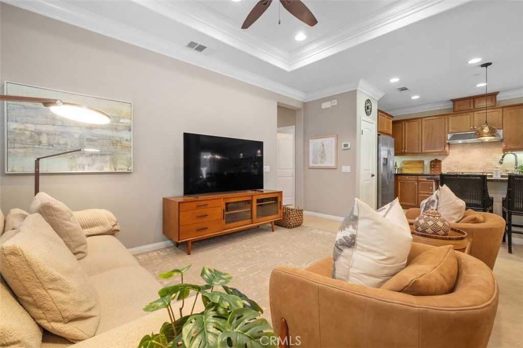 Welcome to the highly sought after Gavilan 55+ gated community of Sendero in Rancho Mission Viejo! This home offers approximately 1,276 square feet of single level living and features two bedrooms and two bathrooms with a seperate laundry room and a 2 car attached garage. The covered patio and lush landscaping create an inviting entryway, leading to a spacious layout filled with abundant natural light. Elegant ceiling fans and warm wood accents throughout the home add to the refined aesthetic, while the tiled backsplash and elegant lighting fixtures in the kitchen contribute to the polished appearance. The primary bedroom is generously sized, with ample space and elegant architectural details. The bathroom offers a spacious layout with extra large walk-in shower, and bright lighting, providing a serene retreat. The outdoor living space allows residents to enjoy the temperate climate and lush surroundings. Step outside and enjoy the resort lifestyle just a short walk away—clubhouses like The Hacienda, The Outlook, and The BBQ Barn offer everything from yoga and bocce to sparkling saltwater pools, spas, and social events. With miles of walking paths, a dog park, and even TV screens for catching the big game, there’s always something to do. And when you’re ready for the ocean breeze, the beach is just five miles away. Designed for both elegance and ease, this is more than a home—it’s a lifestyle.