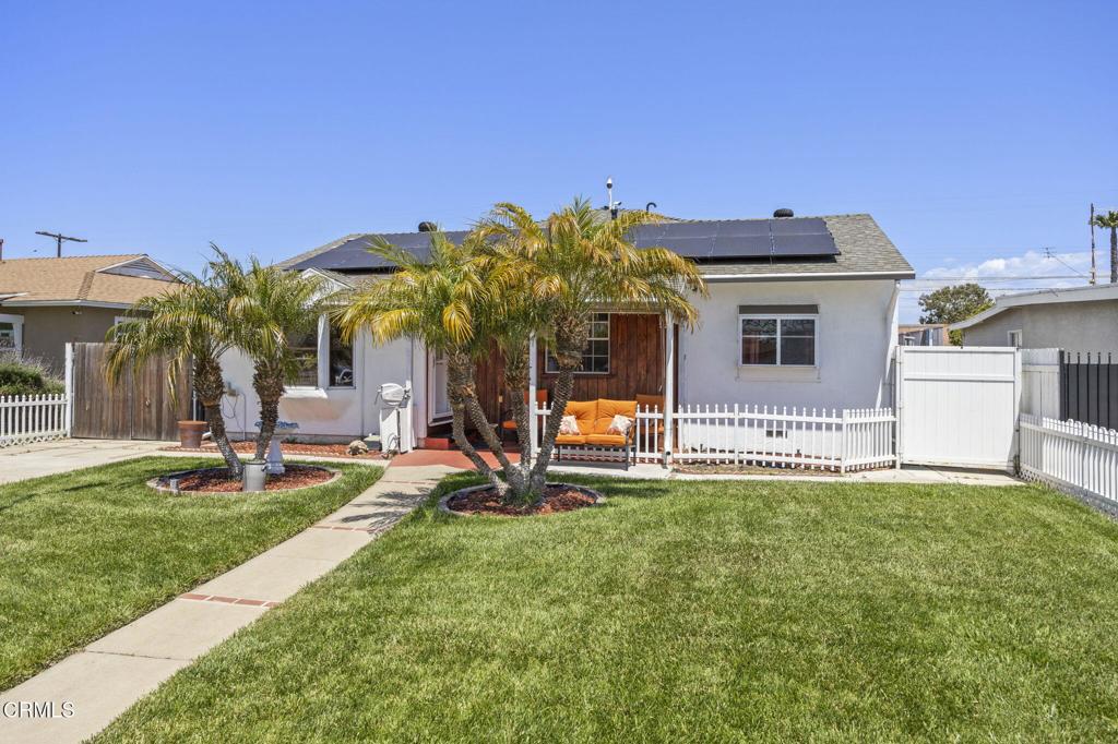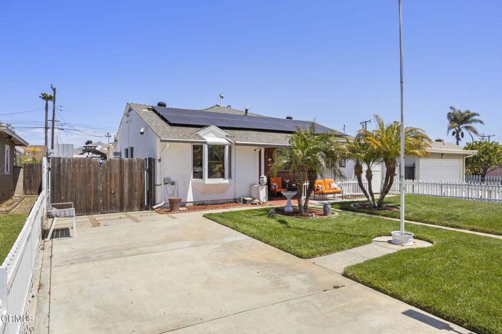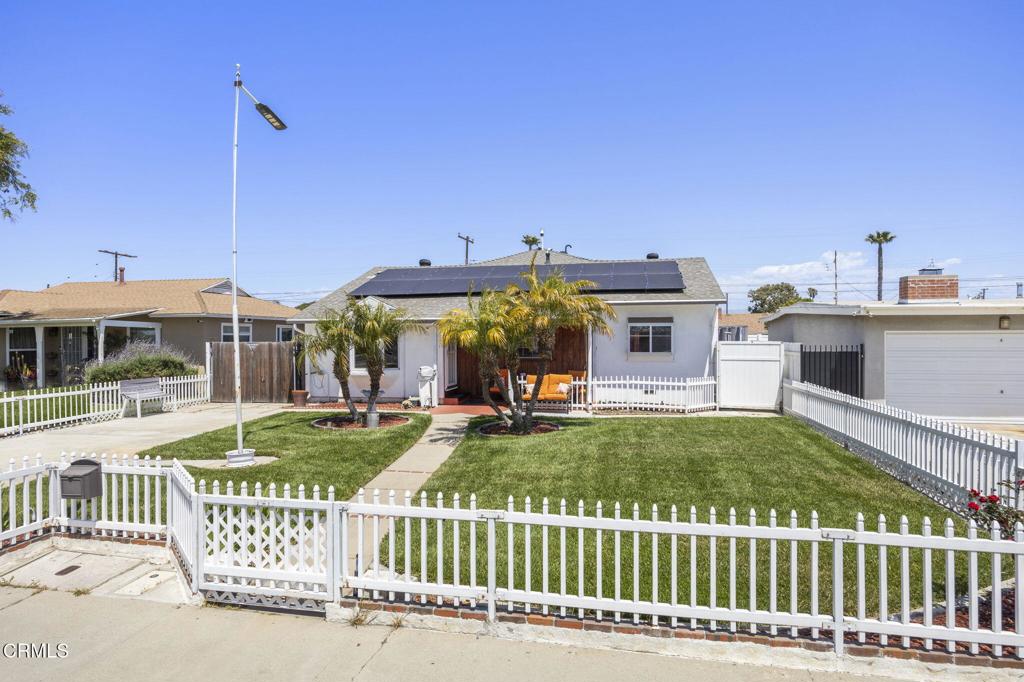 Solar-Powered Home with Pool.Welcome to your dream home in North Oxnard! This exquisite 4-bedroom, 2-bathroom residence is loaded with upgrades. Energy Efficient: Equipped with 20 solar panels, a 5-ton high-efficiency central heating and air conditioning system, and a Nest thermostat, ensuring year-round comfort and significant energy savings. Electronic air cleaner and double pane windows, including a large bay window in the front, provide optimal indoor air quality and insulation. Enjoy the fiberglass pool, jacuzzi, additionally, there is an above-ground Marquis jacuzzi. The remodeled kitchen boasts Corian countertops, refinished cabinets with The dry-walled garage features storage above, a 200 amp panel for the house with a changeover for a generator, a 100 amp panel for the garage with two 220 power outlets for tools, and wiring for a stereo. It also includes remote control garage door and a newly installed remote-controlled gate in front of the garage door for added privacy…and so much more. Located close to the beach and local amenities, this upgraded home is a must-see.