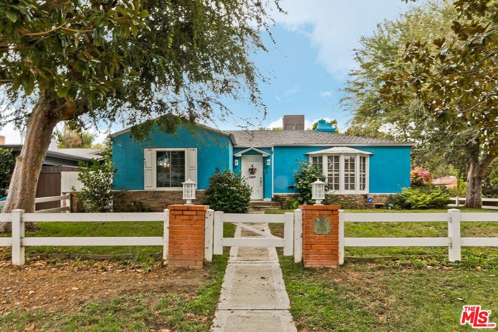 Fall in love with this rare 1936 Valley Village classic traditional with pool on an oversized corner lot. All the original elements you dream about blended with tasteful updates that honor the integrity of its classic style. Step inside to a quintessential living room with a bay window and original fireplace. The dining room flows into an upgraded kitchen with expansive stone counters and stainless-steel appliances, including Viking stove top, Thermador double ovens, Bosch dishwasher. The enormous family room, with its beamed ceilings, feels like the heart of the home – opening through French doors to the backyard with pool, grassy yard and an office with slate floors, bay window and poolside views through French doors. The primary suite features a walk-in closet, spa-like bath with dual sinks, separate shower, soaking tub, and a private French door straight out to the pool. Additional spacious bedroom and bath, a bonus room, and flexible spaces make this home as functional as it is charming. Located in the coveted neighborhood of Valley Village, you’ll love the neighborhood’s tree-lined streets, friendly vibe, and top-rated schools, including Colfax Charter Elementary. Adjacent to Studio City, Sherman Oaks, Toluca Lake, and North Hollywood with all the shops, cafes, and dining at your fingertips. Savor the tranquility of this charming community, with easy access to downtown Los Angeles, Santa Monica, or a quick trip over Laurel Canyon to West Hollywood, and just minutes from Burbank Airport.