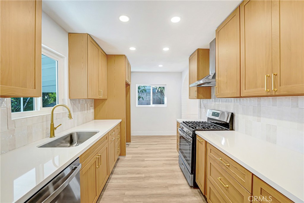 STUNNINGLY REMODELED SYLMAR GEM. Welcome home to this beautifully reimagined 3-bedroom, 2-bath residence where modern design meets everyday comfort. Completely remodeled from top to bottom, this home is move-in ready and designed to impress. Step inside to discover wide plank vinyl flooring flowing seamlessly throughout the open layout, creating a warm and inviting atmosphere. The heart of the home is the chef’s kitchen, featuring rich warm-tone cabinetry, crisp quartz countertops, elegant champagne finishes, and brand-new stainless steel appliances, including a sleek range hood—perfect for entertaining or everyday living. Both bathrooms have been thoughtfully upgraded with modern vanities and custom-tiled showers, delivering a clean, contemporary feel. Cozy up by the fireplace in the living area, ideal for relaxing evenings at home. Additional highlights include upgraded vinyl windows for energy efficiency, a 2-car garage with epoxy flooring, and a layout that balances style and functionality. This is the kind of home buyers wait for—but don’t last long.