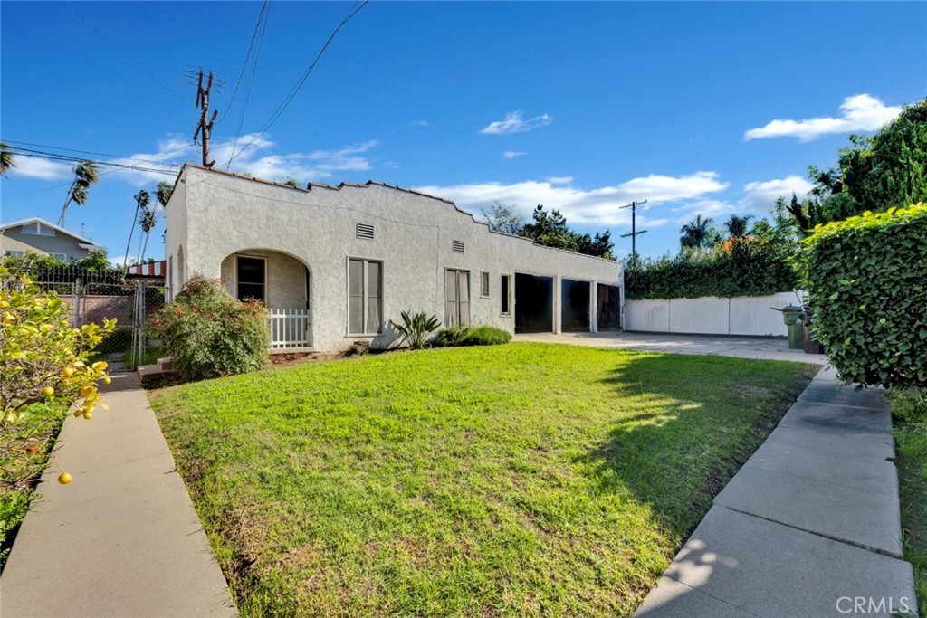 This grand Spanish Colonial Revival in coveted Country Club Park awaits a true visionary ready to restore it to its former splendor. Designed by notable 1920s female architect Anna C. Geck, who was responsible for many similar residences throughout Los Angeles and Orange Counties, the home reflects the elegance and craftsmanship of its era. Much of the original character remains intact, including vintage tile surrounding the fireplace, graceful arched windows, original hardwood floors, and many period light fixtures. The main level offers expansive formal living and dining rooms, a front parlor that may have originally served as two bedrooms, a kitchen with adjacent breakfast room, and a small bedroom and bath that once functioned as maid’s quarters. Upstairs, four generously sized bedrooms are served by two classic Jack-and-Jill bathrooms. At the rear of the property sits a detached one-bedroom, one-bath guest house of approximately 658 square feet, along with a three-car garage. Located within a Historic Preservation Overlay Zone, this property requires substantial renovation to its systems and structure, presenting a rare and meaningful opportunity to thoughtfully revive a significant architectural gem.