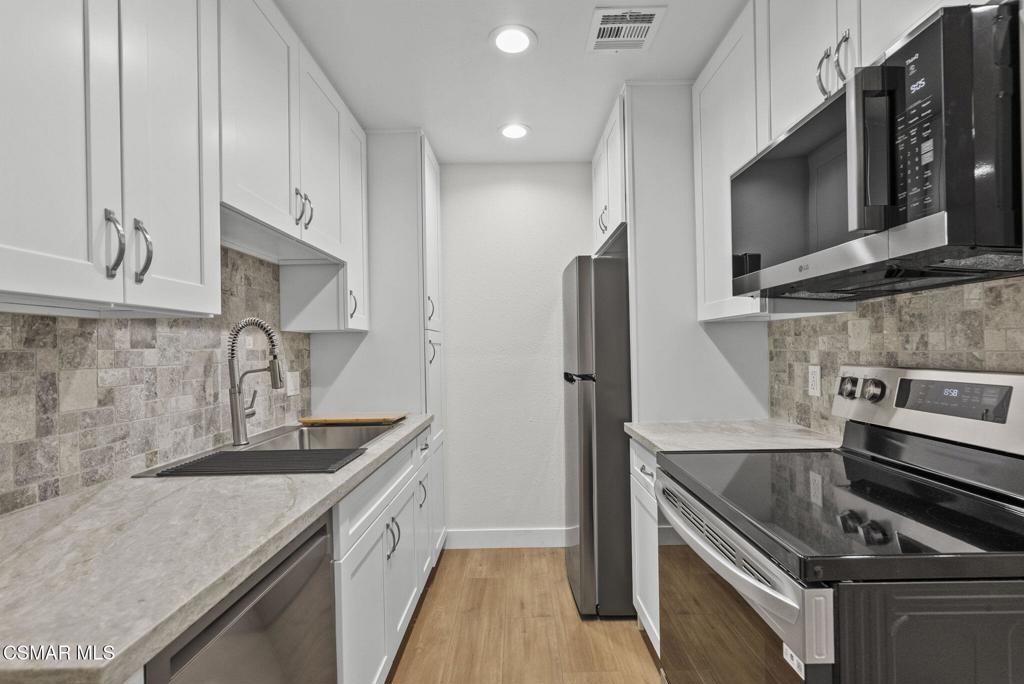 Welcome home at to this cozy and affordable ground-floor condo in the heart of Simi. The unit has been remodeled from top to bottom. The beautiful kitchen has brand new quartz counters with a stunning stone tile back splash, new cabinets with pull out drawers, a large stainless steel sink, all new stainless steel appliances. Enjoy the stunning remodeled bathroom with designer tile shower with beautiful glass doors. New vanity, new toilet & new flooring. Throughout the unit new recessed lighting has been added, all new vinyl planking flooring, ceilings have been scraped, new slider door & windows along with being painted from top to bottom. Nothing to do here put unpack & call this place home. The unit has a dedicated car-port with storage, a low HOA, includes plenty of visitor parking & a sparkling pool and spa. Close to schools, parks, shopping & transportation. WHY RENT WHEN YOU CAN OWN? Don’t miss this opportunity.