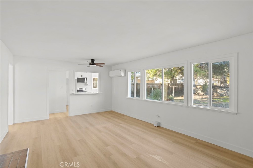 Welcome to this beautifully remodeled home at 1290 Lomita Rd in San Bernardino. From the moment you arrive, you’ll appreciate the fresh exterior paint, mature shade tree, and clean curb appeal complemented by a wide driveway and attached garage. Inside, the home offers a bright, open living space featuring new wood Luxury Vinyl flooring, crisp white walls, and a charming brick fireplace that serves as a warm focal point. Large windows allow for abundant natural light, creating an inviting atmosphere throughout the main living area. The updated kitchen showcases new cabinetry with modern hardware, quartz countertops, stainless steel appliances including a gas range and dishwasher, and a functional layout with ample storage and counter space. Brand new Della 1800BTU Mini Split for heating cooling system, Brand new Milgard windows and brand new water heater. A pass-through opening connects the kitchen to the living area, enhancing flow and usability. Additional upgrades visible include updated lighting, ceiling fan, and refreshed finishes throughout. The property offers comfortable indoor living with outdoor potential, all situated in an established neighborhood close to local amenities, schools, and commuter routes. This move-in ready home combines tasteful updates with classic charm—an excellent opportunity for buyers seeking turnkey in San Bernardino.