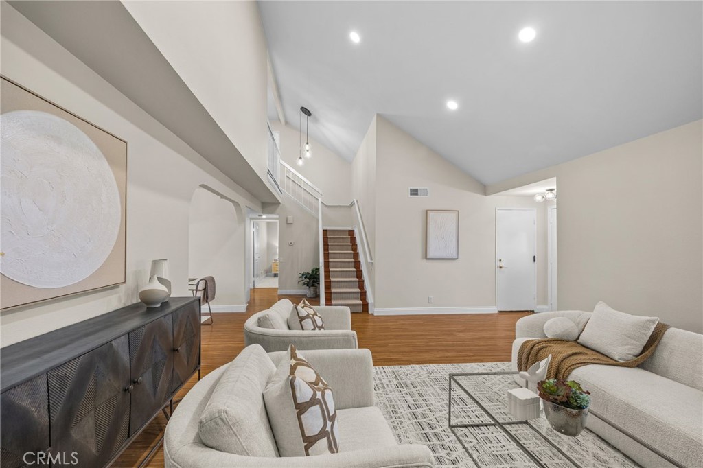 A Modern, Beautifully Upgraded Northwood Retreat—Move-In Ready & Elegantly Appointed! Welcome to this beautifully upgraded single-family home in the heart of Northwood, Irvine, located within walking distance to Distinguished Northwood Elementary School and the serene Coralwood Park. This exceptional residence offers 4 bedrooms, 3 fully remodeled bathrooms, 1,859 square feet, and a 2-car attached garage, all wrapped in a modern, warm, and welcoming design. Step inside to be greeted by fresh new interior paint, dramatic vaulted ceilings, and well-balanced natural light enhanced by double-paned windows and new recessed lighting. Elegant new lighting upgrades include a designer dining chandelier, a designer stairway chandelier, and a new entry ceiling light, all adding sophistication and a refined ambiance throughout the home. The spacious formal living room with its cozy fireplace creates an inviting atmosphere, while the separate family room offers flexibility for everyday living and entertaining. The refreshed white kitchen features generous cabinetry, a charming bay window overlooking the backyard, and seamless flow to the dining and living areas. A highly desirable main-floor bedroom is paired with a newly remodeled full bathroom, perfect for guests, extended family, or a private office setup. Upstairs, the additional bedrooms are well-sized and complemented by beautifully updated bathrooms designed with timeless finishes. The home also offers new carpet in the family room and downstairs bedroom, adding warmth and comfort to these areas. The expansive backyard is an exceptional highlight. Designed for relaxation and outdoor entertaining, it features a peaceful fountain, mature landscaping, and multiple seating areas. The patio has been professionally upgraded with a stamped concrete overlay, giving the yard a clean, modern, and upscale look that enhances both beauty and functionality. Additional upgrades include two sliding doors to the backyard, upgraded lighting throughout, and a neutral palette that creates a true move-in-ready experience. Located in one of Irvine’s most desirable neighborhoods, this home offers award-winning IRVINE SCHOOLS, NO Mello-Roos, NO HOA FEES, and close proximity to parks, walking trails, shopping, dining, and freeway access. A rare opportunity to own a luxuriously updated, turn-key home in the premier Northwood community.