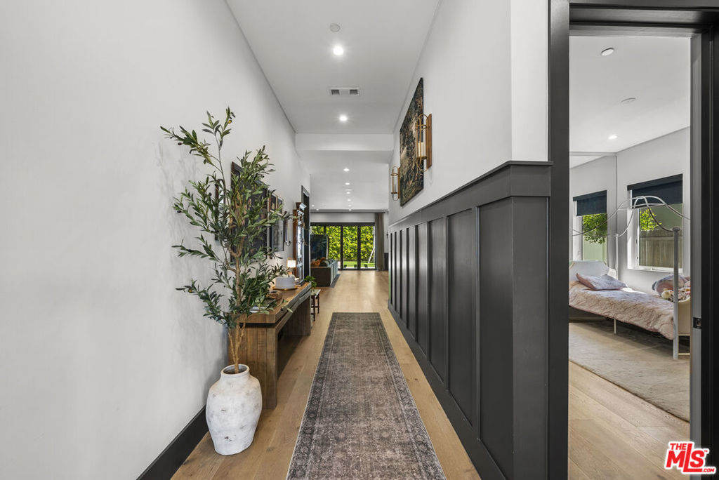 Welcome to this beautifully reimagined single-story modern farmhouse, ideally located on a quiet street in one of Sherman Oaks’ most sought-after neighborhoods. Spanning approximately 2,972 square feet, this 4-bedroom, 4-bathroom residence showcases elevated design, thoughtful craftsmanship, and a seamless open-concept layout filled with natural light.The heart of the home is a stunning chef’s kitchen, outfitted with top-of-the-line appliances including an oversized refrigerator/freezer, range, dishwasher, and an expansive quartz islandperfect for both everyday living and entertaining. The spacious primary suite offers a true retreat, complete with a spa-inspired bathroom and a generous walk-in closet.Designed for effortless California indoor-outdoor living, large bi-fold doors open to a private backyard oasis featuring a sparkling pool and spa, lush grassy area, and multiple spaces to relax or entertain.Additional highlights include wide-plank European oak flooring, soaring 10- to 12-foot ceilings, and a fully integrated security system with cameras. Just moments from the shops and dining along Ventura Boulevard, this exceptional home offers the perfect blend of luxury, comfort, and location.