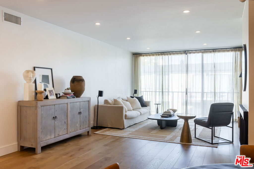 ***Available Fully Furnished***. Designed for elevated living, this top-floor residence delivers over 1,200 square feet of sophisticated interiors with sweeping pool views. European white oak hardwood flooring flows throughout the home, paired with recessed dimmable lighting that enhances the refined, modern ambiance. Every detail has been carefully curated, from the custom cabinetry to the high-end designer finishes. The chef-inspired kitchen and wet bar are standout features, offering floating shelves with integrated LED lighting, Spanish porcelain tile, Dolomite waterfall countertops, and a striking handmade Moroccan sink imported from Marrakech. Premium appliances include a Viking oven, Samsung smart induction cooktop, and a hand-painted Venetian plaster range hood ideal for both everyday living and entertaining. Natural light fills the spacious living area, which opens to a private balcony overlooking the pool. The bedrooms provide a tranquil retreat, featuring blackout shades and closets equipped with motion-sensor lighting. Spa-like bathrooms are finished with elegant Spanish porcelain tile, creating a calming and restorative atmosphere. Residents enjoy access to desirable building amenities, including a fully equipped fitness center, pool, and 24/7 security camera monitoring. Two assigned tandem parking spaces are included. Ideally located just moments from the Sunset Strip, this home offers effortless access to the best dining, nightlife, and entertainment West Hollywood has to offer. ***In-unit laundry installation option, please inquire***.