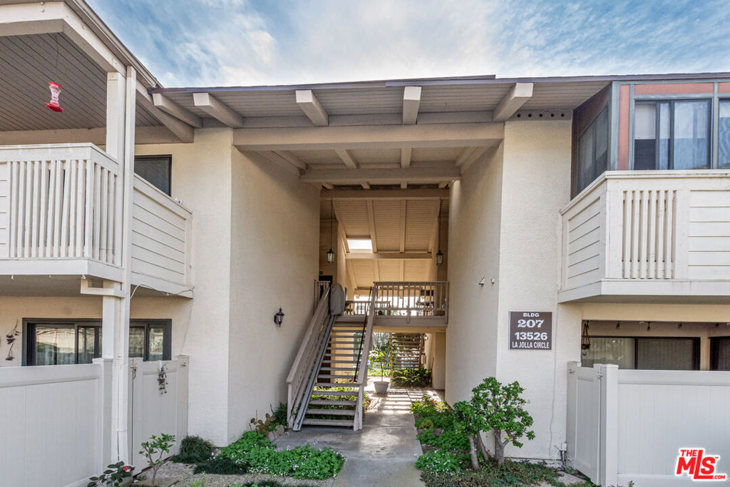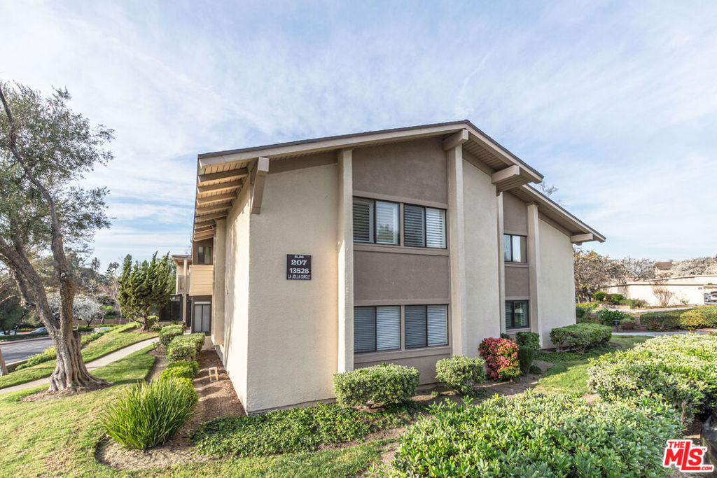 A beautifully remodeled condo in La Mirada Landmark 55+ Community. The entire unit (kitchen, bathrooms, windows/shutters, flooring, paint, etc.) has been recently renovated and impeccably maintained. Top floor unit with only one shared wall. The large balcony has been enclosed to create an extension of the living room, providing versatile extra living space. A ton of warm, national light comes in as the unit faces south. Other features include all new appliances (dishwasher, microwave, stove, washer & dryer), a soaring vaulted ceiling in the living room, skylights in both bathrooms, nicely tucked away stackable in-unit laundry closet. Detached one car garage is in close proximity. Ideally located in the complex, the unit is away from the main road while being a nice stroll away from the club house. HOA covers water and trash. Landmark is a 24/7 guard-gated community offering a serene and tranquil environment in its lush, landscaped grounds with tree-lined walkways. Landmark is also a vibrant community where residents enjoy exclusive access to many amenities and activities including a clubhouse, library, swimming pool/spa, tennis courts, pickleball courts, fitness center, putting green, ample monthly social events. The complex is conveniently located adjacent to La Mirada Golf Course and La Mirada Community Regional Park. Major shopping, dining and medical facilities are also within minutes’ driving. This has got to be one of the best offerings currently in Landmark. Do not miss this opportunity!