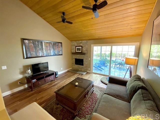 Gorgeous Poway Executive Home with Resort-Style Backyard Oasis! This beautifully updated home features a recently remodeled chef’s kitchen with stainless steel appliances, a luxurious primary bath, and stunning wood floors complemented by plush carpet throughout. Enjoy year-round energy savings with a newer solar system. Newer A/C system and dual-pane windows for enhanced comfort and efficiency. Washer and dryer are included. Architectural highlights include a dramatic wood-plank cathedral ceiling in the living room, upgraded light fixtures and ceiling fans throughout, and a cozy wood-burning gas fireplace. Unwind or entertain in your private backyard retreat, complete with mature fruit trees, a gas fire pit, outdoor flat-screen TV, and a fully equipped BBQ island with grill and outdoor refrigerator. Low-maintenance artificial turf in both the front and back yards means no mowing—ever. Relax under the stars in the private 5–6 person Jacuzzi with ambient outdoor lighting. This truly exceptional property blends comfort, style, and resort-inspired outdoor living at its finest.