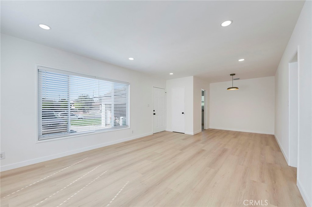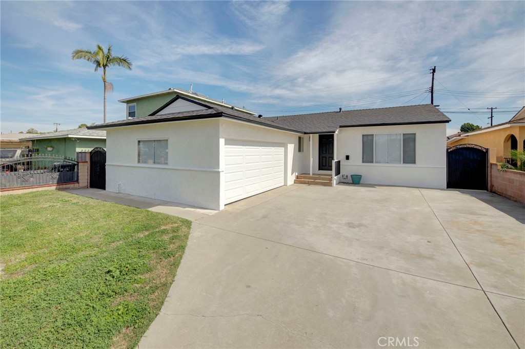 THIS HOME IS A MUST SEE! This rare single-level residence was imagined and designed by @abradesigns to offer an exceptional blend of privacy, space, and modern comfort. Step inside to a bright, open-concept layout filled with abundant natural light, complemented by fresh interior paint, brand-new light oak luxury vinyl plank flooring, and new two-inch Faux Wood blinds throughout. The home features three bedrooms and one bath, plus a valuable bonus office space—ideal for today’s work-from-home needs. Enjoy peace of mind under a brand-new roof, providing worry-free living for years to come. The spacious living room is perfect for gatherings and entertaining, complete with recessed lighting and an adjoining dining area. The thoughtfully updated kitchen showcases white shaker cabinetry, quartz countertops, coordinating hardware, a Fireclay sink, stainless steel five-burner gas range, garbage disposal, a cozy kitchen nook, and direct access to the attached two-car garage. The bathroom has been tastefully reinvented with timeless materials and refined detailing, offering a functional and elevated aesthetic. Enhancements include a new bathtub with a sleek surround enclosure, contemporary hardware and fixtures for both the tub and the light oak floating double-sink vanity with matching storage along with soft-close hardware, modern LED lighting, mirror, and porcelain tile flooring. All bedrooms are generously sized and equipped with modern ceiling fans with LED lighting. The primary bedroom offers enhanced privacy, expanded space, and a generous closet. Additional improvements include new contemporary light fixtures, wide baseboard, new designer door knobs, new HVAC unit metal enclosure, a smart Google Nest thermostat, brand-new 100-amp electrical panel, new garage door, exterior paint, exterior lighting, and mailbox. For year-round comfort, the home also features double-pane windows and central air conditioning and heating. The private block-wall backyard offers a vast space landscaped with drought resistant plants and a concrete patio area that provide endless possibilities for outdoor enjoyment, gardening, and more. Added value comes with the attached two-car garage offering generous storage, washer and dryer hookups, and an oversized driveway with potential RV parking. Conveniently located near the 5, 605, and 91 freeways and close to schools, shopping, dining, and the neighboring communities of Cerritos, La Mirada, Santa Fe Springs, and Whittier.