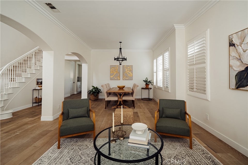 Set within the highly sought-after Moorpark Highlands, this home presents a refined blend of modern updates and functional elegance. This four-bedroom residence with a additional dedicated office/gym has been thoughtfully enhanced to accommodate today’s lifestyle while maintaining a timeless appeal. The interiors have been completely repainted and feature new engineered hardwood flooring throughout the lower level. The fully renovated kitchen is a standout, showcasing Pure Pietra Danae quartz countertops, a waterfall island, book-matched backsplash, and relocated island to enhance flow. Custom white cabinetry with gold pulls and premium appliances, including a 36-inch ZLINE cooktop and built-in Kitchen Aid oven, further elevate the space. The primary suite includes a reimagined en-suite bath, redesigned for optimal layout and privacy. Highlights include a soaking tub beneath a chandelier, dual LED mirrors, a barn door entry, and quartz countertops matching the kitchen’s finish. All bathrooms and laundry areas feature cohesive tilework, updated countertops, and refined black Delta fixtures. Smart living conveniences include Google Nest climate control, hardwired Ring cameras, and Schlage electronic locks at all entries. The garage is equipped with two 220V electric vehicle charging ports and chargers including one for Tesla. Outdoor enhancements reflect the same care: professionally hard-scaped front and back yards, new grass, and a concrete entertaining area with built-in seating, grill, and outdoor refrigerator. A new patio cover with wood-beamed detailing and ceiling fan sets the stage for al fresco living, complete with a Whirlpool spa and mounted TV. A separate 8×10 shed offers valuable additional storage. This property offers the rare combination of turn-key condition, quality updates, and smart technology within one of Moorpark’s most desirable communities.