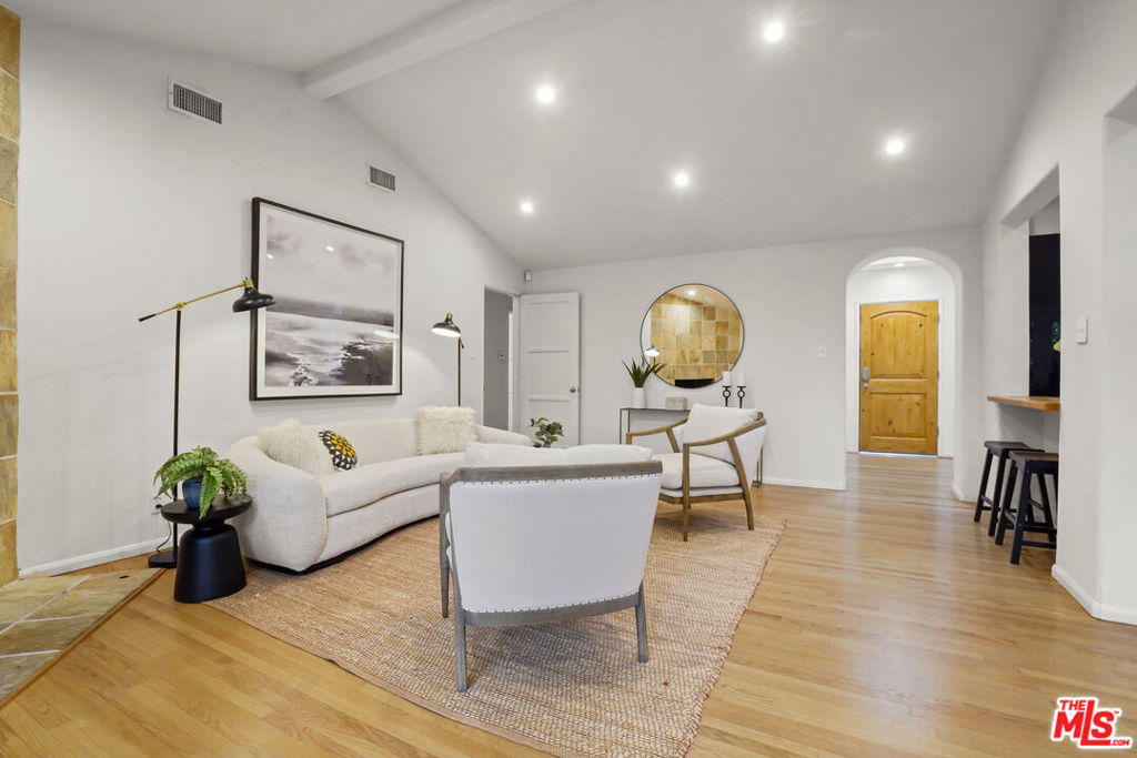 Welcome to your urban oasis! Originally designed and built by famed home builder W.M. Mellenthin, this exceptional Mid-Century Ranch has been thoughtfully expanded and updated with the design and amenities ideally suited for today’s contemporary lifestyle. Sited on an idyllic, serene cul-de-sac and set privately behind gates, this Mid-Century California Ranch resides in divine harmony with its organic environment of towering trees and verdant greenery. Beautifully bridging the aesthetic divide between structure and nature, French doors bring the outdoors in and give way to a private, backyard oasis where the dining and lounging patio, expansive deck and sparkling pool embody the coveted Southern California lifestyle of endless al fresco leisure and limitless outdoor entertaining. The ideal venue for warm, relaxed poolside lounging by day, cool gatherings by night. Inside, the home resounds with a warm, welcoming aesthetic and an open flowing floor plan offering gracious transition from room to room. Blending open space with stylish details, the primary living and entertaining areas become one in light and comfort. Ceilings soar above wood floors. Recessed lighting glows throughout. The kitchen is an open concept culinary center where style, form and function unite for the at home chef. Opening to the great room and dining area, it becomes the perfect gathering place for entertaining with friends and family. Three bedrooms plus a convertible den round out the comfortable accommodations for family and guests. Ideally located in the coveted Chandler Elementary School District and just moments from the beloved Sherman Oaks Rec Center and Hazeltine Park, this residence of timeless style and enduring appeal is the place where you want to live. Welcome!