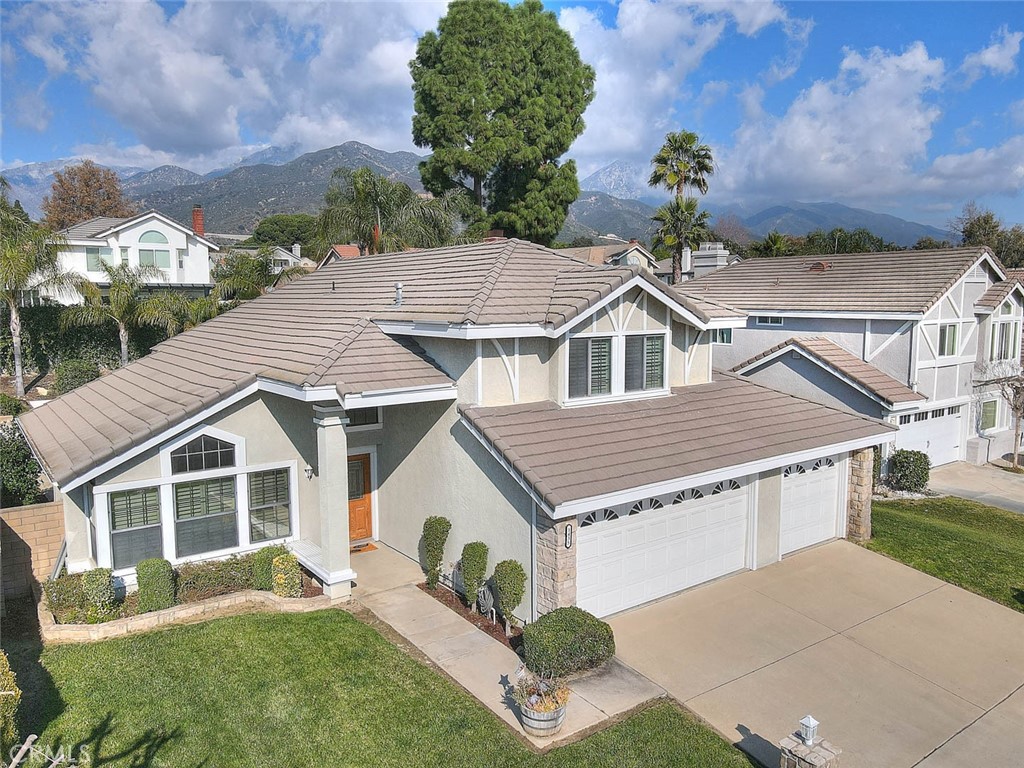 Nestled in the foothills at the base of Mt. Baldy, far above the valley floor, on a kid-friendly cul-de-sac; that once perfect space in the neighborhood where kids rode bikes, played outdoors & learned new skills, new street games….all without any kind of screen! It’s that kind of place! A premium Upland location with 3-car attached garage, pebble-texture PRIVATE POOL, block walls all around & potential RV parking. Uncommon features in this Upland locale for such a reasonable price! Guests enter thru a gorgeous solid oak entry door adorned w/etched glass & there’s a matching sidelight. Hooray! Gas! There’s no 1980’s raised entry here! Foyer is level, with a dramatic vaulted ceiling & plenty of natural light streaming through. The formal dining room includes French doors that access the patio & provide a standing invitation for dining al fresco, anytime. SoCal living demands outdoor space! You’ll need a picnic table & lots of beach towels, since you’ll be spending so much time swimming & playing in the pool! Holidays & birthday parties will become traditions celebrated in your own backyard. Two Alumawood patio covers provide ample backyard shade, without the tedious maintenance of traditional wood. This year, you may decide to plan a staycation entirely at home! But wait, before summer arrives, there’s still time to gather ‘round a cozy brick fireplace in the family room & create the winter memories you’ll one day cherish. French doors in the family room are awesome – they feature mini blinds enclosed within the glass doors, designed to keep them dust-free! All bedrooms up. First level powder room. Primary suite w/dual vanity, big soaking tub & separate shower, walk-in closet PLUS a shoe closet! Plantation shutters everywhere. Five ceiling fans. Indoor utility/laundry room w/a deep sink, handy for cleaning up mechanic grime or gardening grunge. Very reasonable HOA dues; amenities include 2 community pools, basketball, tennis & pickleball. Prestigious Upland Unified School District. Approx. 1,885 sq. ft. per tax roll, not taped, Buyer(s) to verify.