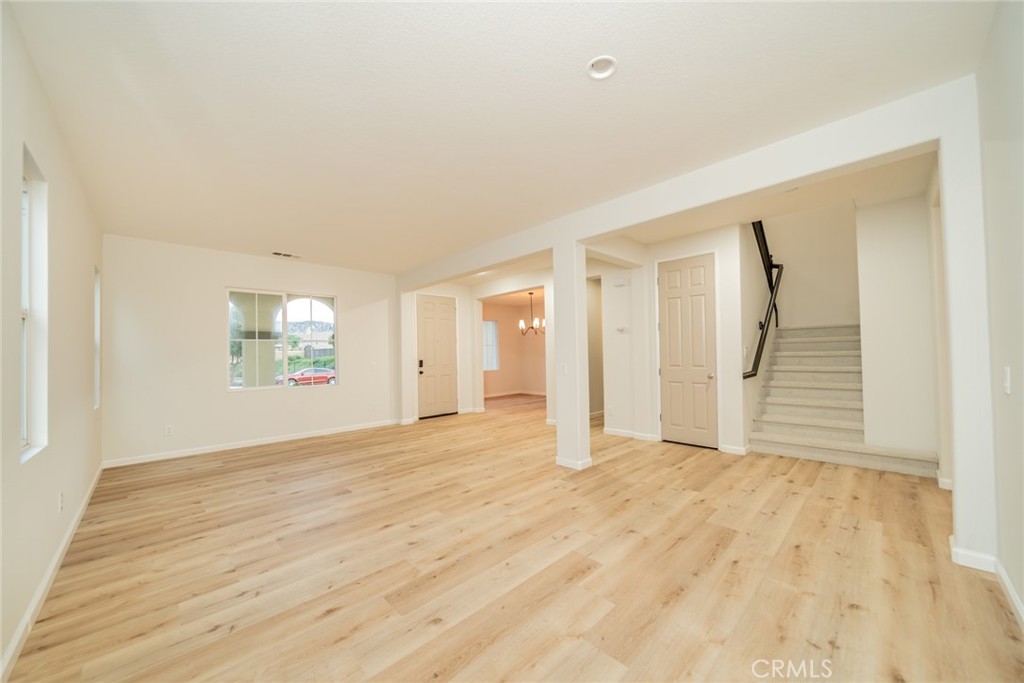 Beautifully updated Moreno Valley home with space elegance, and everyday comfort come together. Located in a desirable community with low HOA dues, this beautifully maintained 5-bedroom, 4.5-bath residence with a 2-car attached garage offers refined living enhanced by thoughtful design and a few modern upgrades. Bright and sophisticated interior featuring new light interior paint, new laminate flooring throughout the downstairs, creating a seamless blend of style, warmth, and functionality. The expansive living room is anchored by a cozy fireplace, providing an inviting setting for intimate evenings and elegant entertaining. A separate formal dining room offers the perfect space for hosting dinner parties, holiday gatherings, or special occasions, adding an extra layer of sophistication to the home. The kitchen serves as a stunning centerpiece, thoughtfully designed with a pantry, newly painted cabinetry, sleek quartz countertops, recessed lighting, and stainless-steel appliances—ideal for both everyday living and elevated entertaining.The main level features a highly desirable and versatile floor plan, including one full bedroom, one full bathroom, and an additional half bath, making it ideal for guests, multi-generational living, or a private executive office. A separate indoor laundry room with built-in cabinetry enhances convenience while maintaining a clean, streamlined aesthetic.Brand new carpeting upstairs, generously sized 4 bedrooms along with a spacious loft, offering an additional living area perfect for a media lounge, home office, or relaxation space. All bedrooms are thoughtfully appointed with new ceiling fans, providing comfort and flexibility for a variety of lifestyle needs.The primary suite is a serene retreat filled with natural light, complete with a walk-in closet and a well-appointed en-suite bathroom with tile flooring, designed to deliver a spa-like experience of comfort and tranquility. Outdoors, the backyard is designed for easy enjoyment and low maintenance, featuring tasteful landscaping that creates a peaceful setting for entertaining, unwinding, or enjoying weekend gatherings. With its refined layout, tasteful upgrades, and low HOA, this home offers an exceptional opportunity to enjoy luxury living without compromise.Ideally situated near freeways, schools, shopping centers, hospitals, parks, and major commuter routes, this exceptional property delivers both convenience and sophistication in a prime Moreno Valley location.