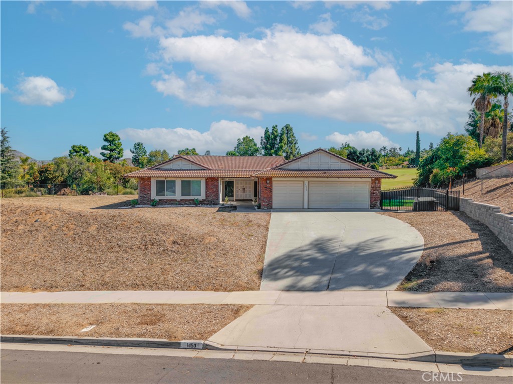 Welcome to 1450 Via Vallarta, a beautifully remodeled home perfectly situated on the prestigious Canyon Crest Golf Course in Riverside. This single story residence showcases modern design, high end finishes, and a spacious open concept layout that captures natural light and stunning golf course views. Thoughtfully customized from its original four bedroom design, the home now features a spacious three bedroom layout with a flexible guest suite, easily convertible back to a full four bedroom floor plan. The vaulted ceilings with exposed wood beams, wide plank herringbone vinyl flooring, and open flow between living, dining, and kitchen areas create a sense of modern elegance and warmth. The gourmet kitchen impresses with quartz countertops, a full height marble backsplash, stainless steel professional grade appliances, and a large island ideal for entertaining. The adjoining family room features built ins, an electric fireplace, and sliding doors leading to the backyard oasis. The luxurious primary suite includes a walk in closet and a spa inspired bath with dual vanities, soaking tub, and frameless glass shower. Each additional room offers comfort and versatility, perfect for guests, work, or multigenerational living. Enjoy the private pool and spa overlooking the golf course, surrounded by low maintenance landscaping and multiple outdoor areas designed for relaxation and entertaining. Every detail in this home blends sophistication with functionality, offering the perfect balance of indoor outdoor California living for all lifestyles. Key Features Located directly on Canyon Crest Golf Course Remodeled single-story with modern finishes 3 bedrooms + convertible guest suite (formerly 4 bedrooms) Open-concept floor plan with vaulted ceilings & beams Designer kitchen with quartz counters & marble backsplash Professional stainless steel range & dual ovens Primary suite with soaking tub & walk in shower Two separate living areas, one with built in fireplace & wet bar Sparkling pool & spa with golf course and mountain views Expansive patio & artificial turf yard for low maintenance living Close to Canyon Crest Country Club, UCR, and shopping
