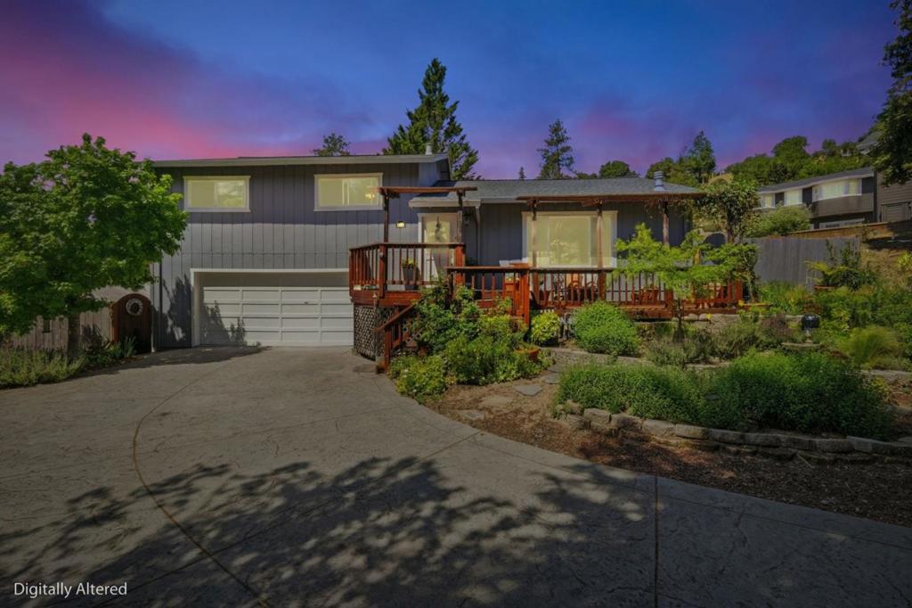 Enjoy the glorious greeting the sunshine grants the mountains in this inviting 2,041 sf, 3 bedroom 2 bath home basking in mountain views on a 22,041 sf lot in sought after Ben Lomond. Step inside to vaulted ceilings that soar to the upstairs bedrooms and bathrooms, filling the home with natural light and an airy sense of space. The remodeled kitchen features modern finishes, generous granite counter space and a sliding glass door to the patio and gazebo–perfect for outdoor dining or entertaining under the stars. The bonus room, on the lower level, opens directly to the garden for a game room, home office or private retreat. Outside discover a landscaped backyard oasis with a meandering walkway winding through a hidden garden, ideal for quiet mornings or sunset strolls. This mountain home is located in an award winning school district, minutes to Ben Lomond, 20 minutes to beaches and easy commute to Los Gatos. Don’t miss this opportunity… It is a home that offers not only a lovely space to live but a peaceful lifestyle too.