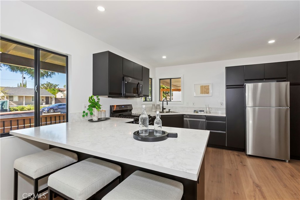 Tucked away on a quiet residential street in the heart of Burbank, this thoughtfully reimagined home welcomes you with a sense of calm the moment you arrive. Subtle water features, clean architectural lines, and intentional landscaping set the tone for what unfolds inside — a residence transformed into a serene, modern retreat years in the making. The single-story layout flows effortlessly, blending warmth and sophistication with contemporary design. Wide-plank engineered hardwood floors, abundant natural light, and custom solid wood doors create continuity and texture throughout. The welcoming living room opens seamlessly into a designer kitchen where quartz countertops, dark stainless steel appliances, and an open-concept layout invite both everyday living and effortless entertaining. At the heart of the home, indoor-outdoor living takes center stage. French doors from the expansive den open to a beautifully curated backyard, allowing light, air, and nature to become part of daily life. This flexible second living space serves as a tranquil lounge, creative retreat, or gathering area — always connected to the outdoors. The backyard itself feels like a private sanctuary, designed with intention and flow. A custom pergola lounge, modern hardscape, layered seating areas, and low-maintenance landscaping create a resort-inspired setting ideal for hosting or unwinding. Every detail reflects a calm, organic aesthetic and a commitment to effortless living. Three spacious bedrooms offer comfort and versatility, while spa-inspired bathrooms showcase refined tile work and a soothing, zen-like feel. Nearly everything you see and touch has been thoughtfully updated, resulting in a home that feels cohesive, elevated, and entirely turn-key. Located just minutes from major studios, freeways, shopping, dining, Magnolia Park, and Downtown Burbank, this home offers the rare balance of peaceful neighborhood living with exceptional convenience. More than a home, this is a reimagined lifestyle — where design, comfort, and tranquility come together with ease.
