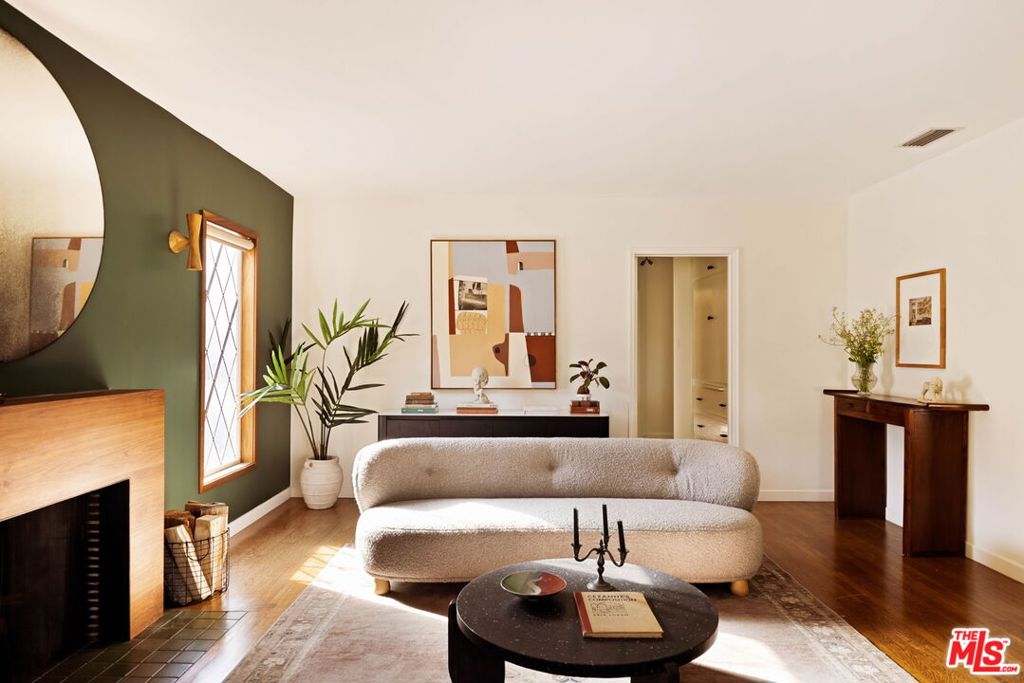 Set in prime Northwest Glendale, where the Verdugo Mountains rise dramatically as a natural backdrop, this Tudor residence offers a distinct sense of place: quiet, grounded, and deeply connected to the landscape around it. Behind its classic facade, framed by original diamond-pane leaded glass windows, the home captures light in a way that feels both timeless and quietly elegant. Inside, nearly 2,000 square feet unfold across a single level, where original hardwood floors and high ceilings establish warmth and architectural integrity, while thoughtful updates bring ease to everyday living. A porte-cochre, handcrafted sconces and custom built in shelving and desks further underscore the home’s enduring character. The oversized living room centers around a wood-burning fireplace with a custom walnut mantel with a Mission West tiled hearth, a warm focal point that carries into the formal dining room. The layout is both open and defined, with expansive rooms, clear sightlines but with moments of separation allowing for space to gather or have space. The kitchen, designed by 1000X Better, is generous in scale and thoughtfully executed. Caesarstone surfaces, a large pantry, Quercus & Co wallpaper, large island, lots of light & ample storage create a space that is elevated, functional, and inviting. Bathrooms and bedrooms, updated by designer Stacey Copeland, introduce a refined sense of play through pattern and texture including Hygge & West wallpaper, original built-ins & high-end design while maintaining the home’s timeless character. Primary suite is notably spacious, with a large walk-in closet, en suite bath with oversized shower & sliding glass doors that open to a natural stone patio, pool, spa and landscaped yard. Outdoors, the home truly expands: covered patio, built-in dining area under cafe lights, kids play structure, Schoolhouse sconces, large grassy area, decomposed granite areas create space for gathering, play, and relaxation. A large Liquidambar tree shades the home in front, while a highly productive lemon tree anchors the rear garden; all enhanced by drought-tolerant, native landscaping. Detached 1 bed, 1 bath permitted ADU with full kitchen offers exceptional flexibility for guests, multi-generational living, work from home, or income. Just around the corner, Brand Park offers multiple hiking trails, open green space, a Japanese tea house, an Arts & Culture library, Art Gallery & baseball diamond. Kenneth Village is moments away for coffee, fresh bread & pastries, Preschool & daily essentials. Glendale’s highly rated schools with diverse magnet programs, excellent city services, abundance of trees, proximity to nature and rating as one of the safest cities in California add value to your life, health and the resale value. This special home has that rare alignment of setting, design, location, function, style and amenities, where everything naturally becomes easier, calmer, more beautiful which we all yearn for.