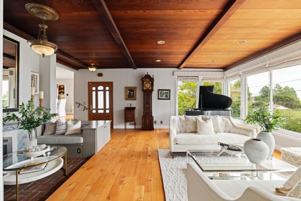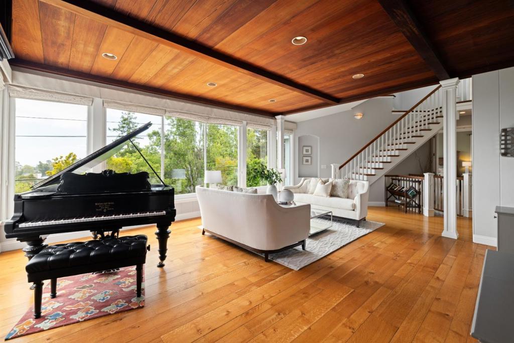This exquisite and sprawling Burlingame Hills Estate is brimming with elegant detail and boasts abundant views of the San Francisco Bay Area from nearly every room of the home. Masterfully landscaped gardens populate an oversized 1/4 acre lot, which offers multiple vignettes for entertaining, relaxation and play. Punctuated by natural sunlight, the interior spaces begin with a grand formal living room, featuring floor to ceiling windows to capture the views. A large family room with double height, wood-beamed ceilings sits adjacent to the oversized formal dining room. Recently remodeled, the eat-in kitchen features high end Dacor appliances and custom inset cabinetry. The massive primary suite is a true retreat, providing a built-in desk, walk-in closet, and a stunning en-suite bathroom featuring glamorous finishes. Additionally offered on the main level are a powder room and secondary suite with full en-suite bath. Upstairs, 3 additional bedrooms and a study/rumpus room are serviced by a 3rd full bathroom. On the lower level, a large bonus room with kitchenette, 1/2 bath and a separate entrance would make for a perfect au-pair unit, or ADU. Outside, a newly added outdoor kitchen with gas grill and fire pit provide the perfect setting for entertaining and dining alfresco.