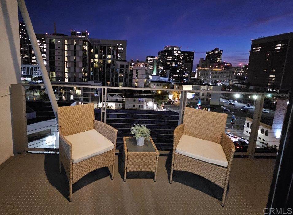New year, new space! Day or night expansive views overlooking the downtown San Diego skyline with Southwesterly views from this freshly painted & renovated turnkey condo at Solara Lofts. This spacious, open-concept layout invites natural light to flood the entire space, highlighting the brand-new LVP flooring that stretches across the living areas. The oversized primary bedroom offers tons of space and a large closet. The bathroom has been updated with a newly resurfaced shower tub, elevating the space with a fresh, contemporary feel, and plenty of storage. The seamless flow from the living, dining, and kitchen areas creates the ideal space for both entertaining and relaxing. Step out onto your private south-facing balcony to take in the vibrant city views, whether it’s sipping coffee in the morning or catching the sunset over the skyline. Second bedroom makes for an amazing work from home space, nursery or guest space. Convenience is key with new full-size in-unit washer and dryer, and two dedicated parking spaces. Plus, there’s guest parking and a storage locker for your extra belongings. Enjoy all the perks of city living with a wine bar on the first floor, and a short walk to the lively neighborhood of Little Italy, the farmers market, the Gaslamp, & Balboa Park. Solara Lofts offers on-site management, a fitness center, saunas, bike storage, pool table, massage room, and a racquetball court.