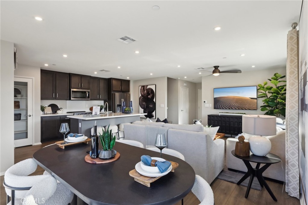 NEW CONSTRUCTION – NEW COMMUNITY! Welcome to Dahlia at Sierra Vista, a brand-new townhome community located in a gated community in the city of Fontana, featuring a community pool and play lot. Dahlia at Sierra Vista offers two-story townhomes ranging from 1,584 to 1,705 sq. ft. with up to 4 bedrooms and 2.5 bathrooms. This Residence 1705 plan features 4 Bedrooms and 2.5 Baths, a spacious open-concept Great Room, Kitchen and Dining Area designed for gathering and perfect for entertaining friends and family. The gourmet Kitchen offers stainless-steel appliances including cooktop, dishwasher, and microwave/hood and quartz kitchen countertops. The second level features a thoughtfully-designed layout, offering spacious secondary bedrooms and luxurious Primary Bedroom and Bath, convenient laundry room and bathrooms with dual sink vanities. Among the features and finishes, homeowners will also appreciate the unparalleled peace of mind in owning America’s Smart Home, Home is Connected. The Home is Connected package offers devices controlled from one application to stay connected to home around the clock.