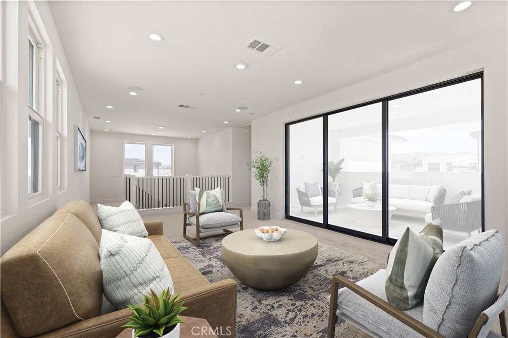 Welcome to Elevate, a luxurious Toll Brothers new community in Great Park Neighborhoods, Irvine, ideally located within walking distance to Cadence Park School (K-8) and Portola High School, and adjacent to the new Great Park Framework with trails, lakes, a museum, and more. Easy access to freeways and shopping. Homesite 30 is a new construction home that is situated on a west facing, 4,568 sq ft lot, and walking distance to all that Great Park neighborhood has to offer including 7 thoughtfully designed parks, 6 resort-style pools, walking and bike trails, and community gardens. This stunning Melina floorplan features 6 bedrooms, with 5 bathrooms, and is 3,892sq. ft, with a 2-car garage. Upon entering the home, a bright and welcoming foyer leads to an open-concept great room and kitchen, showcasing extended, smooth white cabinets, upgraded quartz counters and full backsplash, stainless steel Wolf appliances and sub-zero, stainless-steel refrigerator. The great room features 20′ vaulted ceilings, open concept dining, and entry to your private backyard through a multi-slide stackable glass door, great for entertaining. The second level primary bedroom features luxury vinyl plank flooring, in-suite bathroom with freestanding tub and large glass shower with porcelain tile walls. Highlights of the home include a gourmet kitchen with WOLF appliances, a Sub-Zero refrigerator, and designer-selected finishes throughout. This innovative floor plan design features two stories living plus a 3rd-floor bonus loft with a deck, 2 large bedrooms, and full bath—perfect for entertaining or a private retreat. Solar System included- purchased. Homesite 30, is move in ready now. Interior Photos provided are of the model home.