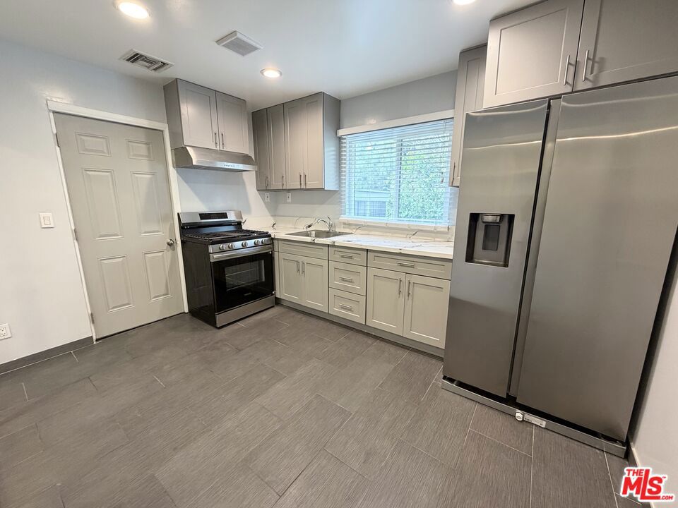 Newly constructed ADU with one BR, one-bathroom approx 500 sq ft. Fully secured with its own private gate and entrance. There is an indoor laundry with side-by-side washer & dryer. Spacious kitchen with new refrigerator, stove and coarse countertops and new cabinetry. Master bathroom with tub and double sinks. There is no back yard and only street parking is available. Desirable Encino location and walking distance to Ventura Blvd. and short drive to freeways 101 and 405.