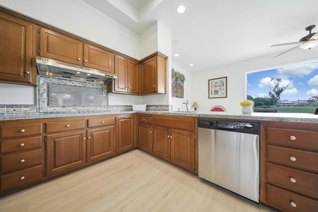 A stunning Tucson model, offering breathtaking views of the clubhouse and fairways. This spacious home features two large bedrooms, a generous den perfect as a third sleeping area or office, and 3.5 beautifully updated baths, including a remodeled primary suite. The living room boast a fireplace and sliders to the oversized patio for seamless entertaining. The morning room has a large picture window framing gorgeous views, while the open-concept living area connects perfectly to the remodeled kitchen — with a wall removed to create an inviting, airy flow. Modern upgrades include new windows and doors, a new HVAC system, luxury vinyl flooring, a revamped laundry room, and energy-efficient solar panels. The atrium has been converted to a fabulous flex space with over sized skylights making it so bright and open with doors that slide back into the wall! This home includes a 2-car garage plus a golf cart garage. Beyond the home, The Lakes Country Club offers an unmatched lifestyle with 27 holes of championship golf, a state-of-the-art fitness center, a premier racquet center, 44 pools and spas, and a sensational clubhouse filled with dining and social opportunities. This isn’t just a home — it’s an invitation to embrace resort-style living at its finest. Schedule your private tour today to see this exceptional property for yourself!