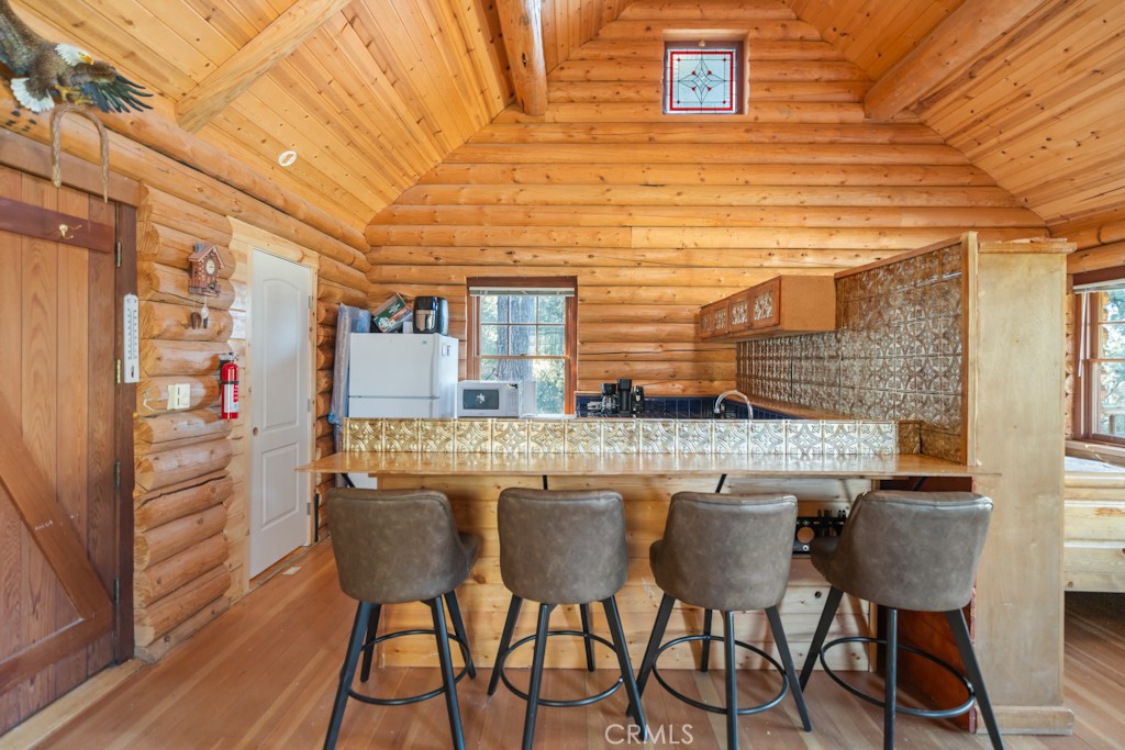 Step into the charm of the Pine Lodge, a rare and authentic log studio cabin that perfectly captures the spirit of mountain living. Built in 1997 on an expansive 10,149-square-foot lot, this 715-square-foot retreat radiates warmth with its massive log beams, rich wood walls, and soaring ceilings. The open-concept studio layout is ideal for full-time living or a serene vacation escape, where high-reaching stained glass window details add a unique artistic flair to the rustic style. Tucked away on Zurich Way—one of the most private and serene streets in the area—this home features great windows designed to showcase the breathtaking, unobstructed forest views from every angle. The interior is anchored by a traditional wood-burning stove and a beautifully designed kitchen with a breakfast bar, blending timeless aesthetics with modern comfort. Truly unique to this property is its rare two-bathroom layout; the lower-level bathroom, utility room, and storage area are accessed via a whimsical exterior spiral staircase or a private side entrance, providing an added layer of character and privacy. While this hillside sanctuary feels like a secluded forestry ranger’s post, it is just a short drive from the premier amenities of Pine Mountain Club, including the golf course, pool, tennis courts, and equestrian center. Whether you are exploring the vast network of nearby hiking trails or relaxing on your covered decks, the Pine Lodge is a must-see. Schedule your showing today!