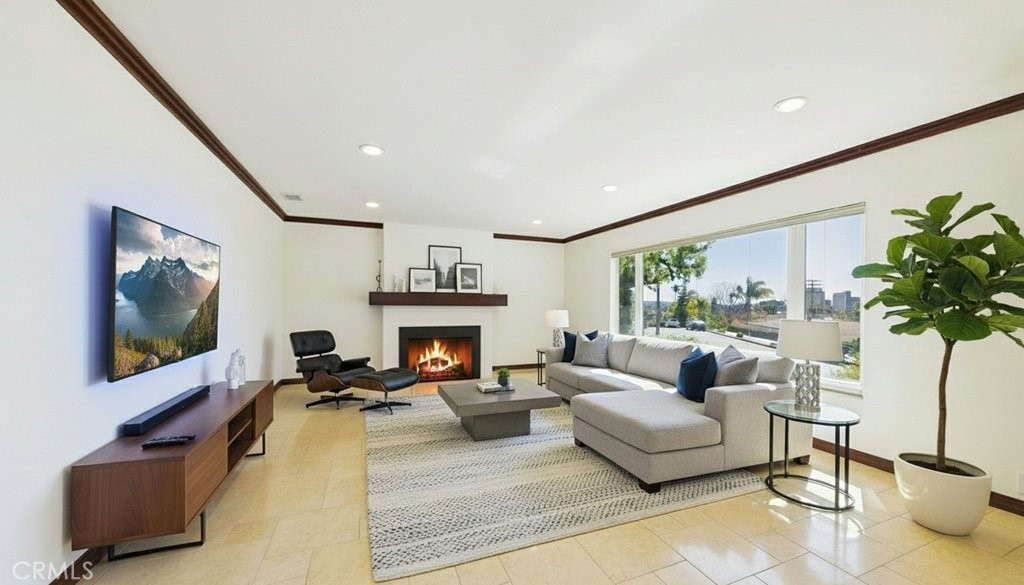 Beautifully fully remodeled single-level 3 bedroom, 2 1/2 bathroom home offers 2,713 sq ft of living space on a 7,949 sq ft corner lot with city views and exceptional indoor/outdoor living. Upon entering the home, you are welcomed by the spacious formal living and formal dining rooms, perfect for entertaining. The home also features a family room just off the kitchen, creating a comfortable and functional space for everyday living and gatherings. A separate entertainment room opens to the backyard through elegant French doors, providing a seamless transition to the outdoor space and pool area and spa. The gourmet kitchen has been thoughtfully updated with custom cabinetry, stone countertops, premium appliances, and a professional 6-burner stove with a convenient pasta arm faucet, making it ideal for cooking enthusiasts. Ample cabinetry provides generous storage throughout the kitchen. Enjoy the best of Southern California outdoor living in the backyard featuring a sparkling swimming pool and spa perfect for relaxing or hosting gatherings. Additional highlights include an attached 2 car garage with custom storage cabinets, wine cooler, and washer and dryer, plus a separate storage shed for added convenience. The home sits on a desirable corner lot, offering added privacy and curb appeal, all within a convenient single-level layout. This exceptional move in ready property combines luxury, comfort, and breathtaking views ideal for both entertaining and everyday living.