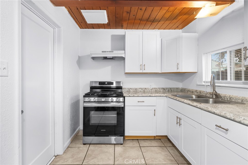 Charming 2-bedroom, 1-bath home offering 859 sq ft of living space on a spacious 6,000 sq ft lot. Ideally located near freeways, schools, and shopping, this property provides both convenience and comfort. The inviting front yard features a nice driveway for ample parking. Step inside to an open layout complemented by a newer mini split system for cooling and a wall heater for warmth. The kitchen boasts a gas range, refrigerator, and plenty of cabinet space for all your storage needs. The home features tile flooring throughout—no carpet anywhere—making maintenance a breeze. The primary bedroom continues the tile flooring for a cohesive look. Enjoy the character of the wooden ceilings and the unique appeal of a flat roof. The backyard offers a generous space, an open canvas ready for your personal touch or outdoor living ideas. This home is perfect for first-time buyers, investors, or anyone looking for a well-located property with great potential. Don’t miss out on this opportunity!