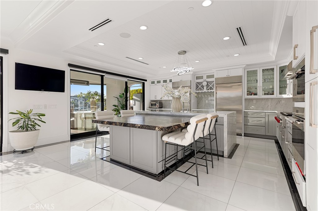 Set in Coral Cay – Huntington Harbour’s most coveted 24-hour guard-gated enclave of just over 100 properties. This contemporary waterfront masterpiece redefines luxury living. Completely rebuilt in 2021, the approximately 4,800-square-foot residence blends modern sophistication with California Mediterranean warmth. It is perfectly situated on a premier 7,200-square-foot parcel, offering captivating bay views, dazzling nighttime lights, and spectacular south-westerly sunsets. Designed for both lavish entertaining and serene everyday living, the meticulously crafted floor plan features five bedrooms—including two spectacular waterfront primary suites—and 6.5 spa-inspired bathrooms. Oversized windows and walls of glass flood the interiors with natural light, highlighting exquisite finishes like imported stone, custom ceiling designs, and designer lighting. The chef’s kitchen is fully equipped with top-tier Wolf, Bosch, and Sub-Zero appliances, complemented by a spacious, dedicated wine room. The outdoor living spaces are an effortless extension of the home. Boasting a rare 103 feet of water frontage, the exterior features an expansive water-level terrace, an elevated terrace off the bonus room, three balconies, and a glass-enclosed sunroom. Boaters will relish the exceptional private dock, capable of accommodating an 85-foot vessel. Residents of Coral Cay enjoy exclusive access to lush greenbelts, lighted tennis and pickleball courts, and a private beach. This exquisite home is a rare opportunity to enjoy the ultimate waterfront lifestyle, just minutes from Southern California’s premier dining, shopping, and recreation.