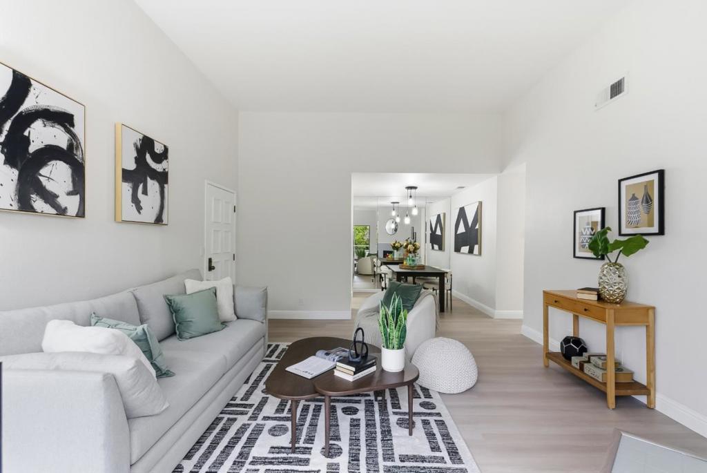 Welcome to this beautifully updated end unit in Hamilton Place where high ceilings & modern finishes create an inviting, contemporary feel. The home features new laminate flooring, fresh paint throughout & stunning quartz countertops in the kitchen and bathrooms. The kitchen offers a sleek, modern design with recessed lighting, new cabinetry, stainless steel appliances, and a space saving microwave above the range. Both bathrooms are upgraded with spa like rainfall showerheads and the master includes a handheld wand for a luxurious experience. The spacious primary suite includes a generous walk-in closet, while the in-unit laundry & central A/C add everyday comfort & convenience. Enjoy peaceful moments on your private balcony overlooking the bright, lush greenbelt. Hamilton Place is known for its prime central location just minutes from eBay, the Pruneyard, light rail station & major highways including 880, 17, & 85 . Shopping, dining, & outdoor recreation are all nearby, with Los Gatos Creek Trail, Trader Joes, Whole Foods, & community pools within easy reach. After a day of activities, you will appreciate the convenience of your own garage and carport, located right across from each other. Don’t miss the opportunity to own this beautifully updated home in a fantastic location!