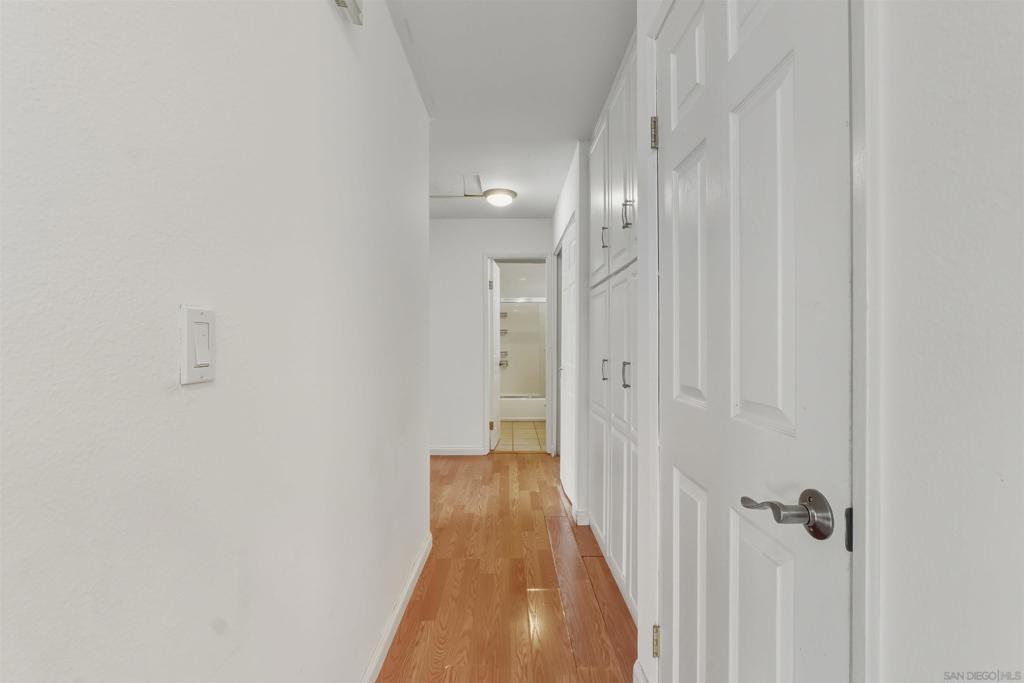 VA approved! Charming upstairs end unit condo with a bright, open floor plan and mountain views from the living area and private patio. This 2 bedroom, 1 bath home features laminate flooring in the living, dining, and hallway, a kitchen with dishwasher and built in microwave, and a full-size washer and dryer inside the unit. Enjoy the convenience of a garage with storage plus an additional parking space behind the garage. The community offers a sparkling pool and lush, mature landscaping throughout. Great location with easy access to shopping, dining, and freeways!