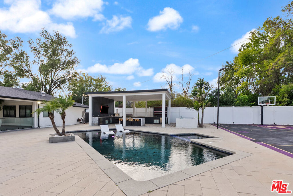 Tucked behind gates and set on an expansive 30,000+ square-foot lot, this extraordinary private estate delivers a rare blend of space, privacy, and resort-style entertainer’s dream rarely found at this price point. The residence offers 4 bedrooms and 6 bathrooms, with every bedroom featuring its own private ensuite, providing exceptional comfort and privacy for family and guests alike. The primary suite is a true retreat, boasting dual walk-in closets and a spa-inspired bathroom complete with dual vanities, a deep soaking tub, and an oversized luxury shower, creating a serene, hotel-like experience. Outdoors, the property truly shines with a full-length basketball court, resort-style pool and jacuzzi, and multiple curated gathering spaces ideal for hosting unforgettable events. The grounds are fully outfitted for elevated outdoor living, including a custom Italian pizza oven, two additional BBQ stations, an outdoor fire pit, and a fully equipped outdoor kitchen complete with dual refrigerators, bar, island, integrated trash, television, and surround sound perfect for seamless indoor-outdoor entertaining. A striking Buddha statue welcomes you at the driveway, setting the tone for the estate’s serene yet grand presence. With parking for 50+ vehicles, the property is exceptionally suited for car collectors, private events, or extended family living.The interior offers an excellent opportunity for personalization, with select updates such as flooring, paint, and minor cosmetic improvements to suit the next owner’s taste reflected in the pricing and presenting strong value for the land, amenities, and scale offered. Offering exceptional privacy, space, and lifestyle potential, this one-of-a-kind property is ideal for an owner-user seeking a personal retreat, an entertainer’s compound, or a value-driven long-term investment.