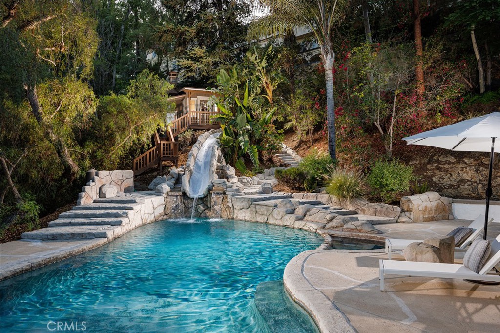Your own private oasis awaits in the coveted Lemon Heights area of North Tustin. Have you have ever thought of embracing an exquisite lifestyle where you are surrounded by nature’s grandeur, yet minutes away from all the modern conveniences . . . . living amongst a plethora of mature trees & landscape, on a sprawling 33,900+ Sq. Ft lot with these gorgeous vistas available from nearly every window, door and vantage point? How about the thought of enjoying a private, resort-inspired pool complete with waterslide, plenty of deck space for guests and lounging, and a gorgeous outdoor entertaining pavilion that effortlessly hosts small get-togethers or grand soirees? How about a gated driveway at the end of a private street, where parking numerous vehicles will not be a concern? ALL of this is just the beginning at 1761 Lemon Terrace. Offering 5 roomy bedrooms (one down), plus office and 5 1/2 baths, you’ll relish the graciousness of this approx. 4,182 sq. ft. residence. Absolutely flooded with natural light, this is a home to experience. Soaring ceilings with wood beam detail, dual communal areas both with direct access to the incredible outdoor environs, two cozy fireplaces (family room and primary), and a nearly new kitchen with all the bells & whistles. On the second level, you’ll find a primary suite which is a sanctuary, hosting a large retreat, plenty of closet space, a remodeled bath, and tree-top & pool views. All secondary bedrooms are generous and well appointed. Three offer extended balcony access, which offers the ideal vantage point for appreciating your surroundings. Private Pool pavilion, complete with waterslide & play house. Private sport court. Private kids park area complete with jungle-gym equipment. Over-sized three-car garage. Private road in to and out of the property. This is a rare offering in a special location, which offers so much more than an ideal lifestyle. . . . . it’s HOME