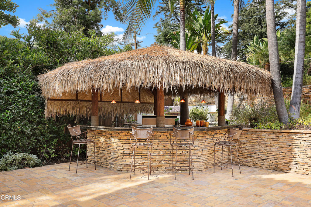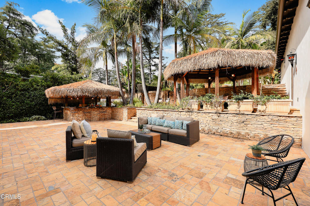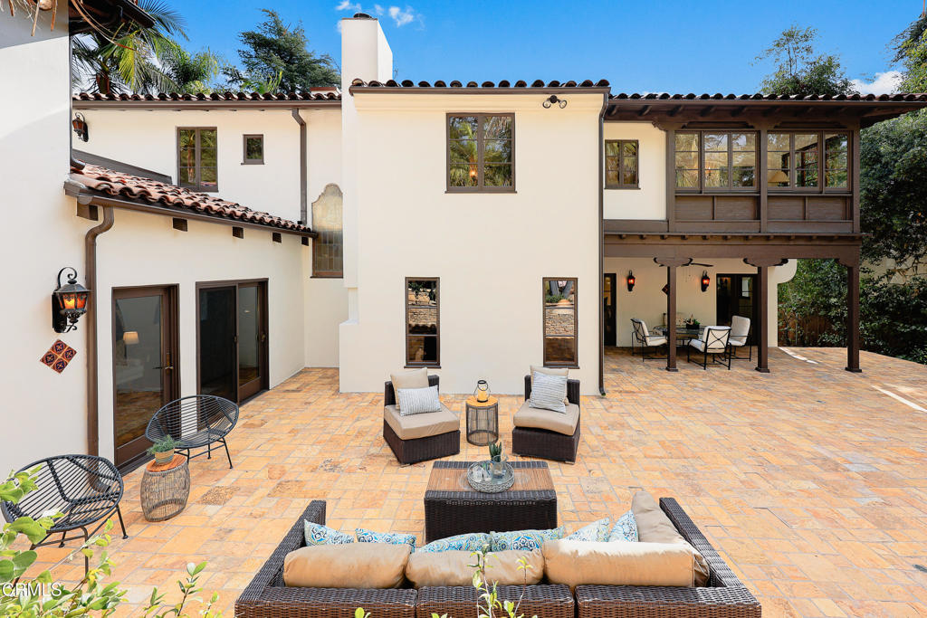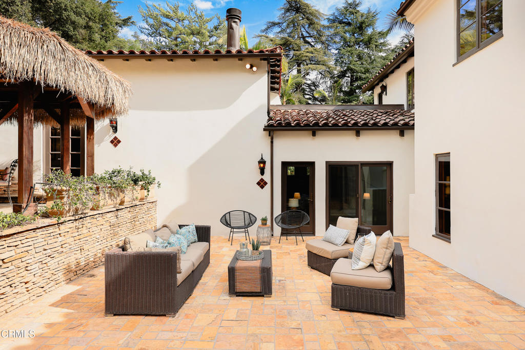 Enjoy resort style living at this exquisite 1932 Spanish estate in La Canada, where timeless charm meets modern day living. As you approach, the award-winning California native gardens create an inviting embrace. The entry’s wooden door, framed by Mexican accent tiles, opens to reveal an impressive living space. Surrounded by original windows, the living room features exposed ceiling beams, original hardwood floors, wood & gas-burning fireplace and double doors that lead to the courtyard. The formal dining room, adorned with an antique Mexican chandelier, offers views of the front yard, perfect for intimate gatherings. The adjacent kitchen is a chef’s dream, featuring an oversized Thermador stove with a striking copper hood, ample cabinetry, granite countertops, Viking double ovens, a built-in refrigerator, wine fridge, and an eat-in counter. The kitchen seamlessly integrates a breakfast nook and den, ideal for versatile living. The grand family room serves as the heart of the home, with a cozy fireplace, access to the backyard, and next to the laundry room and attached garage. Two powder rooms are strategically located for ease during entertaining. Mid staircase, a stunning stained-glass window bearing the Latin phrase ‘this home is safe’ reminds visitors of the estate’s storied past. The primary suite offers a private sitting room with backyard views, an ensuite bathroom with a glass-enclosed shower, dual vanities, and imported Peruvian mirrors, complete with double closets and ample cabinetry. A junior suite with its own three-quarter bath and two additional bedrooms, connected by a full bathroom, complete the upper level. Handcrafted wooden doors, colorful tile accents, and custom light fixtures imported from Mexico add to the estate’s rich character. Step into your private outdoor haven, where two palapa-covered spaces invite you to dine al fresco or gather around the built-in BBQ and bar. A gas fire pit with a circular built-in bench, accented by a trickling waterfall adds to the tranquil ambiance. Just a few steps above, the sparkling heated pool and spa, framed by lush greenery provides ultimate privacy and an escape for year-round California living. Additional features include attached two-car garage, newly painted interior & exterior (2024), new waterproof palapas (2024), and driveway gates with new automatic motors (2024). Minutes from the Town Center in the renowned La Canada School District, come experience this breathtaking Spanish hacienda.