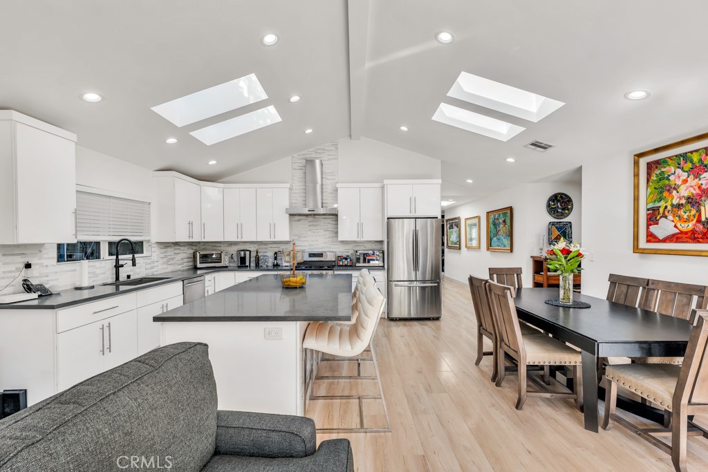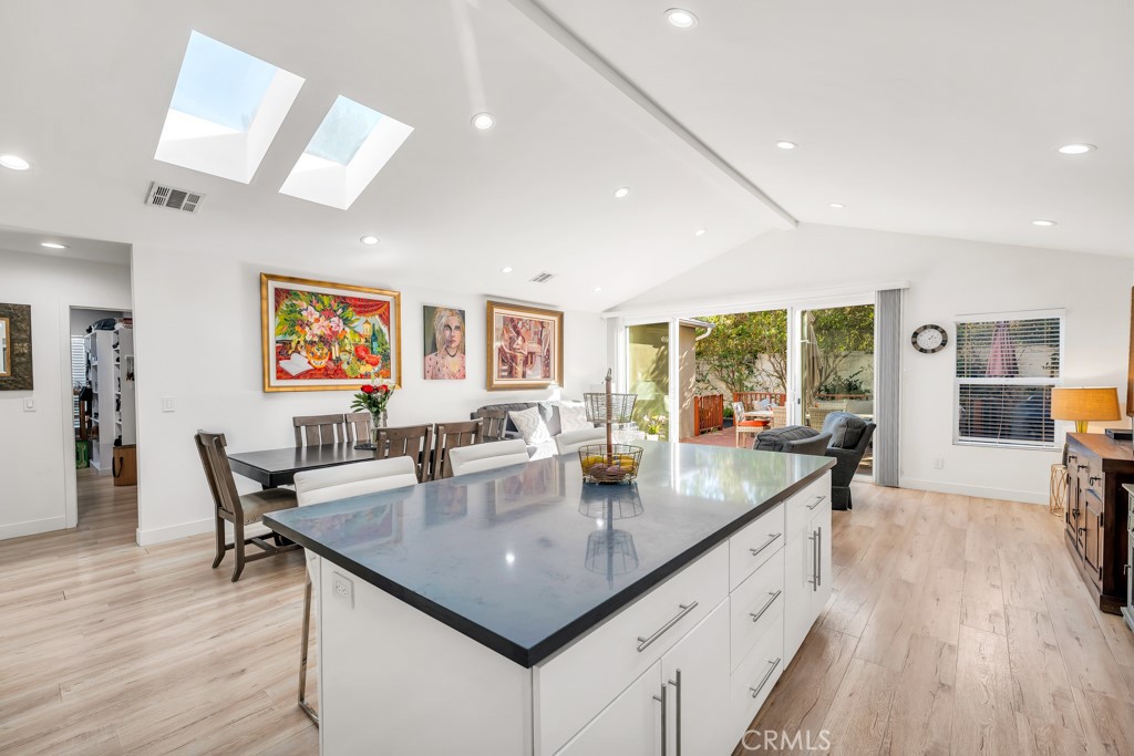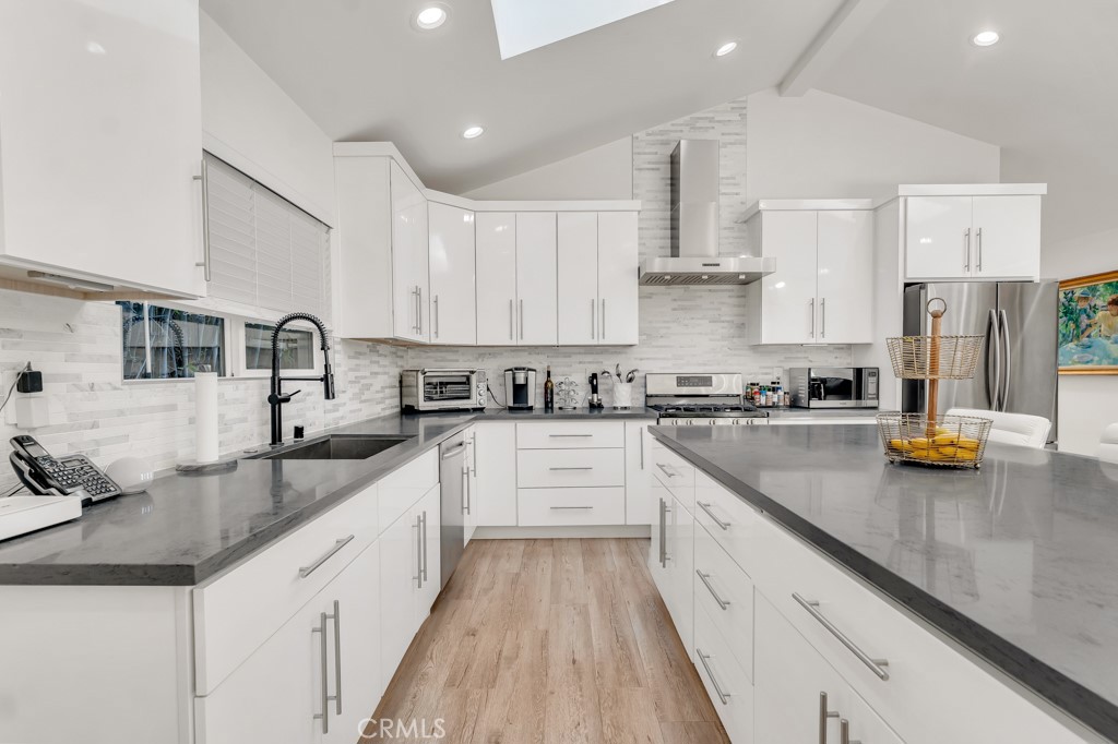 Welcome to your new home at 18016 Collins St a 4 bedroom, 4 bathroom retreat! From the moment you arrive, you’ll be captivated by the charming curb appeal and the mature trees that provide a serene escape from city life. Step into the formal living room, which offers ample space for all your needs. The two front bedrooms are spacious, with full-size closets, and share a beautifully appointed full bath off the hall. As you continue down the hall, the soaring vaulted ceilings in the great room draw your eye, while the four skylights over the kitchen flood the space with natural light. This great room is an entertainer’s dream, featuring a chef’s kitchen with stainless steel appliances and an oversized island. Relax in the family room and enjoy the view of the wood deck and mature trees through the wall-to-wall glass doors. The secondary suite has been transformed into an incredible walk-in closet, complete with cabinetry all around and an island, as well as a full bathroom. The primary suite is equally impressive, with its enormous size, vaulted ceilings, walk-in closet, and full bathroom featuring a double vanity, extra-large shower, and separate jetted tub. Find your zen in the backyard, surrounded by mature trees and flowers. The wood deck offers plenty of space for entertaining, dining, barbecuing, and more. This home boasts unique features that set it apart, including a walk-in pantry with built-ins, a recessed bookshelf in the hallway, a finished garage with storage cabinets, newer fencing, an expansive deck, recessed lighting, vinyl flooring, double-pane windows, soft-closing cabinetry, linen closet, coat closet, skylights in bathroom and hall, and much more.