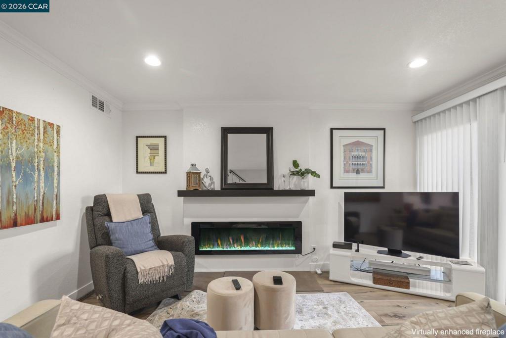 One-of-a-kind townhome located in the highly sought-after “Sunset Park” community, offering an exceptional opportunity as a primary residence or investment. Tucked at the back of the complex for added privacy, this beautifully updated end-unit home features two spacious bedrooms, two private patios, and an upstairs balcony off the primary bedroom, creating wonderful indoor-outdoor living spaces. Stylish laminate flooring runs throughout the home, complemented by crown molding, recessed lighting, two new patio sliders, and a custom programmable color-changing fireplace with a stone surround that adds warmth and ambiance year-round. The updated kitchen showcases quartz countertops and a pantry, while the full-size indoor laundry is conveniently tucked behind a charming barn door. Residents enjoy resort-style amenities including a pool, clubhouse, tennis courts, and scenic walking paths, all set within beautifully maintained grounds. Ideally located next to the Iron Horse Trail and just minutes from Heather Farms Park, Diablo Hills Golf Course, downtown Walnut Creek, shopping, dining, freeways, BART, and John Muir Hospital. This is a rare opportunity to own a truly turn-key home in an unbeatable location—don’t miss it.