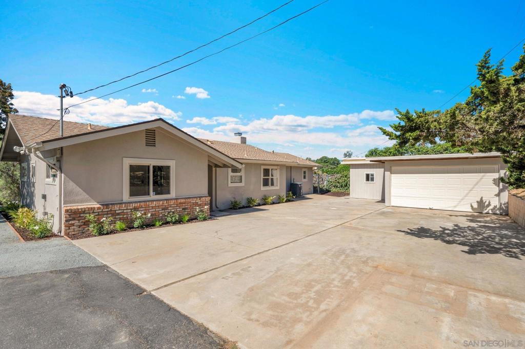 Your peaceful retreat awaits! Not visible from the street & well insulated from noise, this one-of-a-kind property has a country-feel, on almost a full acre – but close to all your daily needs, as well as the 15 & 78. Beautifully remodeled, this 3bed/2ba home sits high on a HUGE usable lot that fits many needs: an ADU for family or income, parking for RVs & toys, a backyard pool oasis, workshop, possible lot split, growing your own food, or just space from your neighbors! Must be seen to appreciate! SEE SUPPLEMENT for more info.. Upgraded sunroom with new dual-paned windows, new doors & insulation offers beautiful views of surrounding trees & mountains to enjoy gorgeous sunsets and cool breezes. Incredibly unique properties like this don’t come around often…don’t miss your chance to make it your personal sanctuary! Room sizes are approximate, sunroom is included in square footage.