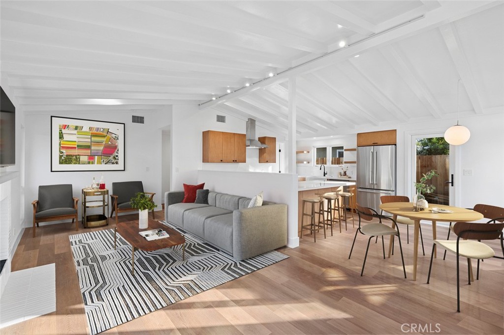 Revel in this remodeled and expanded Cliff May inspired Mid-Century Modern home with true indoor/outdoor Rancho style. The 2022 remodel doubled the livable square footage and left nothing undone, bringing the home up to today’s standards while honoring its architectural heritage. Open great room with kitchen, living, and dining, plus 3 bedrooms, 2.5 baths and a laundry room complete the interior. Roof, siding, windows & doors, flooring, electrical, kitchen & baths, AC and furnace, insulation, tankless hot water heater, and landscape/hardscape are all NEW. The home enjoys a low traffic, end of cul-de-sac location and a pie-shaped lot with huge backyard. The lucky owner has room to add a pool and/or ADU. Two outdoor patios beckon you to bask in Eastside Costa Mesa’s sun and ocean breezes. A detached 2-car garage is off the alley, along with an additional off street parking spot. The location can’t be beat with proximity to schools, parks, beaches, and amazing retail options. Truly a rare architectural gem! *NOTE: Several photos show virtual staging.