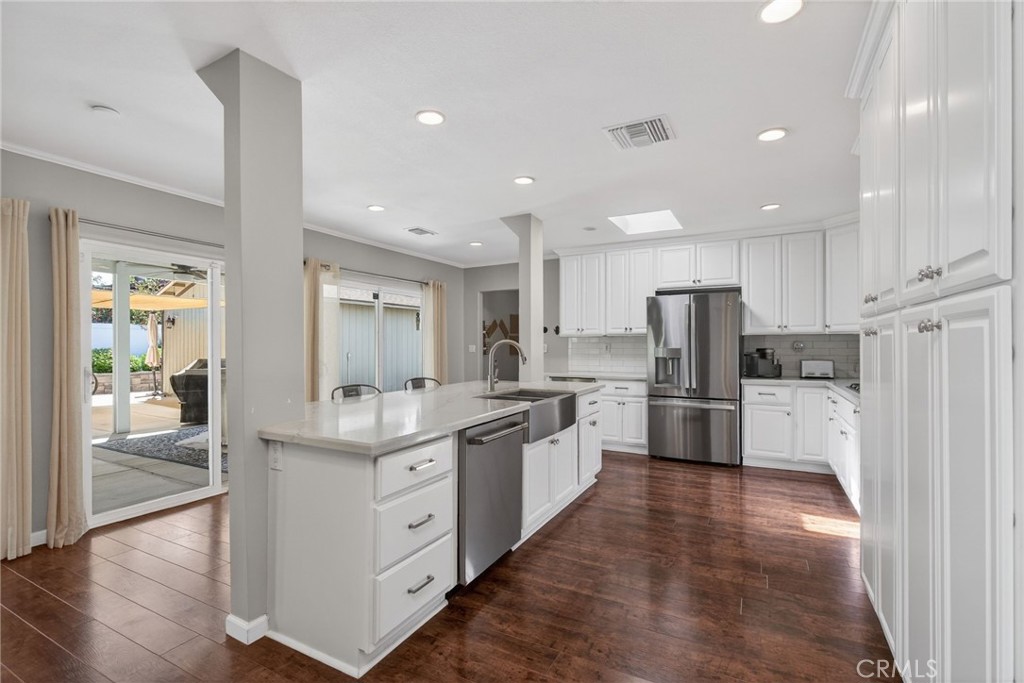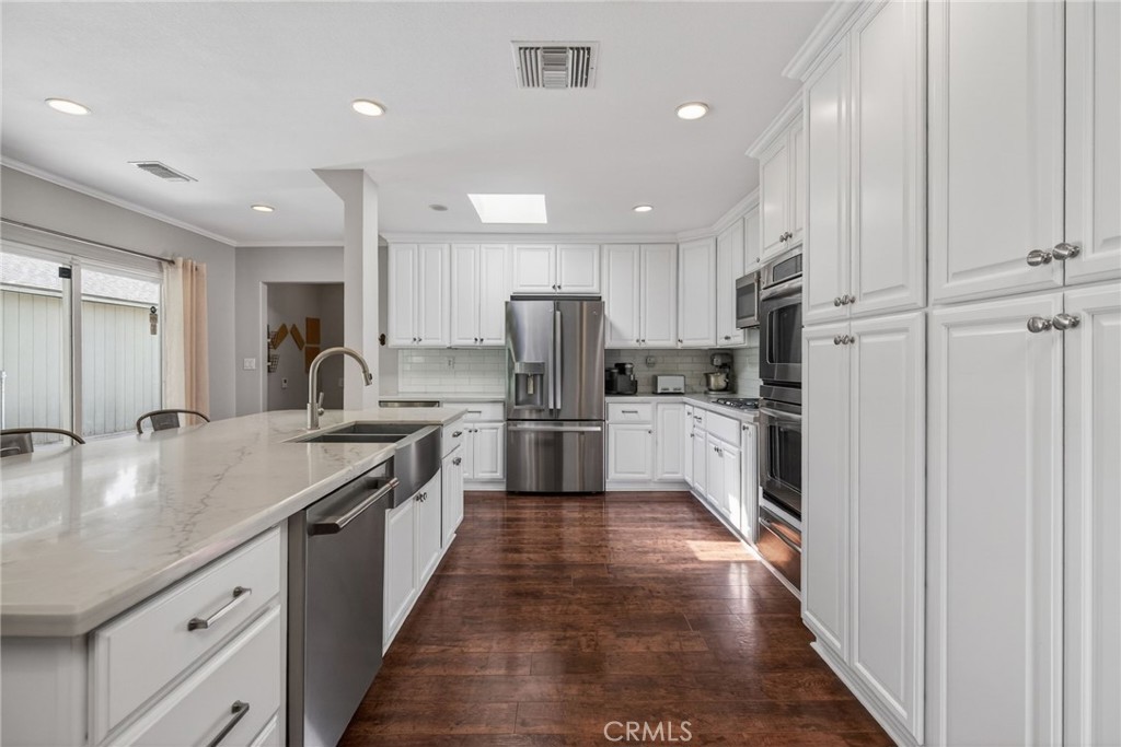VICTORIA WOODS-a masterpiece of elegance nestled in the heart of Riverside’s prestigious Victoria Woods community. This luxurious 4-bedroom, 3-bathroom residence is perfectly positioned on a sprawling corner lot at the beginning of a peaceful cul-de-sac, offering both privacy and sophistication. A home trending in design meets timeless craftsmanship. The newly renovated open floorplan is a showstopper, featuring a professionally curated custom kitchen ornamented with sleek stainless-steel appliances, a double oven AND A Leaven/dough riser also known as a bread warming drawer, and quartz countertops that sparkle from its cleanliness and natural light. The king-size island invites gatherings, while the dining area exudes warmth and charm, setting the stage for cherished meals. The family room, anchored by a stunning double fireplace with two personalized hand-made mantles crafted from timber from Big Bear Mountain, is the epitome of cozy luxury. The outdoor grounds are a sanctuary of “FUN”ction and beauty. Professionally designed water-wise landscaping envelops the property, complemented by mid-century breezeway block walls in pristine condition. The custom Swing Kingdom Amish-designed playground, complete with premium turf with 2-inch padding and multiple heavy-duty Sail Shade coverings, create a haven for play AND safety. Stacked, mortarless planters brim with fragrant heirloom herbs like lavender and rosemary, adding a touch of garden elegance. Retreat to the alluring primary suite, where a spa-inspired multi-head shower awaits! Something special to offer in this home is the ability to host extended family/guests in the thoughtfully designed mother-in-law quarters which are ensuite equipped—perfect for multi-generational living if that should suit your family needs. A detached garage with ample parking and amenities like a Alumawood patio and a separate side yard for a sunny garden spot, storage add both convenience and style. Located just moments from highly sought-after schools (Poly High, Alcott, and Gage), shopping plus Victoria Country Club for golf and fine dining is just a couple blocks away, this home offers a lifestyle of unmatched ease and refinement. With quick access to the 91 and 60 freeways, every convenience is at your fingertips. Experience indulgence redefined—this is more than a home; it’s an elevated way of living.