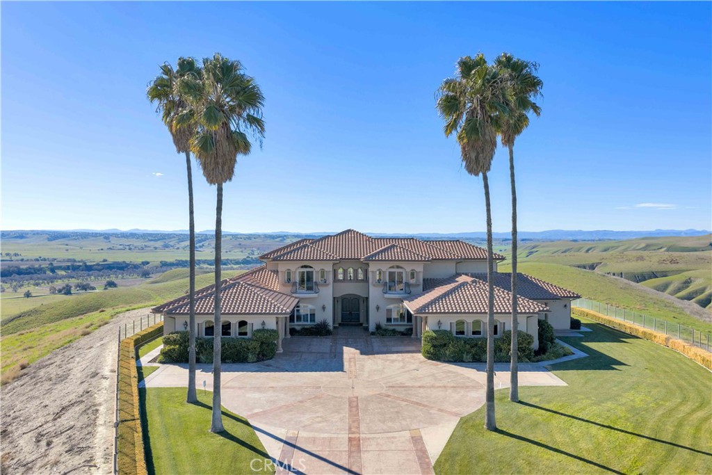 Welcome to Five Arches Ranch, an extraordinary 639.5± acre estate in the heart of California’s Central Coast, where wide-open space, wine country living, and true ranch luxury come together. Spanning three legal parcels, this legacy property offers a rare combination of agricultural production, equestrian facilities, residential comfort, and exceptional privacy. At the center of the ranch sits a beautifully maintained 7,772± SF main residence (7BD/6.5BA), built in 2008 and positioned at the end of a gated, cypress tree-lined private driveway. Designed to frame panoramic ridgeline and vineyard views, the home features large windows, an attached guest quarters with a kitchenette, two 2-car garages, a resort-style 40′ x 20′ pool with automatic cover, a built-in spa, an outdoor kitchen with a pizza oven, and 745± feet of glass fencing surrounding the main compound. The chef’s kitchen is complete with high-end Dacor stainless steel appliances, a breakfast nook, sprawling granite counters, a walk-in pantry, and a climate-controlled wine cellar. The living room and loft benefit from soaring ceilings, natural light through large arched windows, and tasteful tile floors. Five Arches Ranch is deeply rooted in equestrian tradition. The extensive horse facilities include an impressive 60′ x 50′ horse barn with 11 stalls, an attached trainer’s apartment, 800 linear feet of fenced turnout, and a 40-foot radius hot walker. Additional structures include a 925± SF hay barn, a 4,000± SF equipment shed with a fuel station, a ranch office, two ranch houses, and a historic 1935 barn, seven buildings in total supporting full ranch operations. Agricultural assets include 12± acres of producing olive trees, 23± acres of Syrah (1998), 10± acres of Cabernet Sauvignon (2017), and extensive irrigated ground (264.62± acres). Four high-capacity wells support farming, equestrian use, and future expansion. The ranch also offers grazing land, a second elevated plateau ideal for a future home site, and nearly 2 miles of Highway 46 frontage for accessibility. A property of this scale, versatility, and beauty is exceptionally rare in Paso Robles wine country. Five Arches Ranch offers land, luxury, privacy, water, and income potential, all in one extraordinary package.