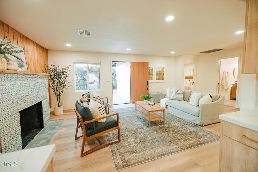Nestled in the heart of downtown Ojai, 201 Fox St is a soulful 3-bedroom, 2-bathroom (plus office space) abode that captures the essence of relaxed Ojai living. With 1,135 sq ft of beautifully remodeled space, this home offers the perfect blend of charm, functionality, and creative energy. Step inside and feel instantly at ease. The light-filled interior is warm and inviting, with tasteful modern updates that honors Ojai’s simplicity . The open living area centers around a cozy fireplace, beautifully accented with custom tile work–a perfect spot to unwind alone, with guests or family. The updated kitchen flows effortlessly with clean lines, natural textures, and thoughtful finishes throughout. The laundry/mud room is conveniently located next to the kitchen. All three bedrooms offer peaceful retreats, while the two remodeled bathrooms feature artistic, spa-inspired touches. Need a studio, remote workspace, or guest hideaway? The office, located just off the garage, is your flexible sanctuary–ideal for creatives, professionals, or quiet thinkers alike. Outside, the vibe is pure Ojai: mature trees, dappled sunlight, and space to gather, garden, or simply breathe. Additional upgrades include a newer electrical panel and quality finishes that make this home truly move-in ready. And the location? It’s unbeatable. You’re just a short stroll from downtown Ojai’s charming shops, local cafes, farm-to-table restaurants, and the iconic Libbey Park–perfect for live music, community events, or a quiet afternoon under the oaks. Experience the Ojai’s finest living – 201 Fox St is ready to welcome you home. ***ADU PLANS AVAILABLE UPON REQUEST***